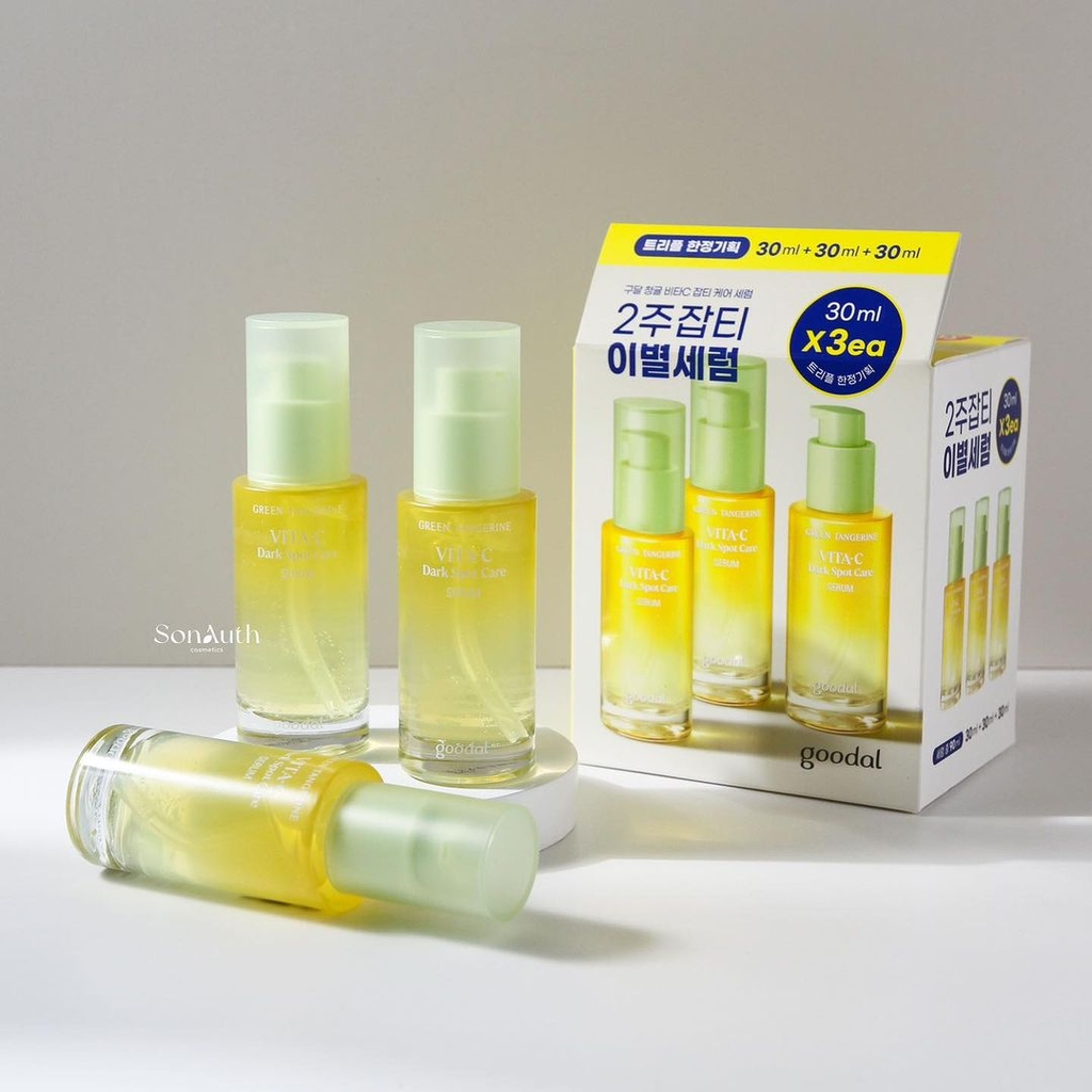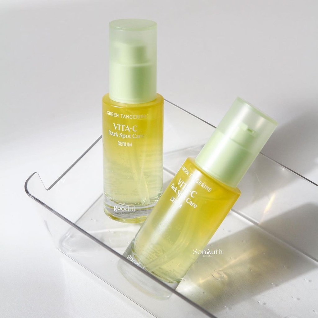 Goodal Green Tangerine Vita C Dark Spot Serum chính là serum biểu tượng của hãng với độ sốt tại các kệ hàng Olive Young thì không thể bàn cãi, serum làm dịu dưỡng sáng được săn đón nhất, đã nhận tới 20 giải thưởng sắc đẹp tại Olive Young đó nha