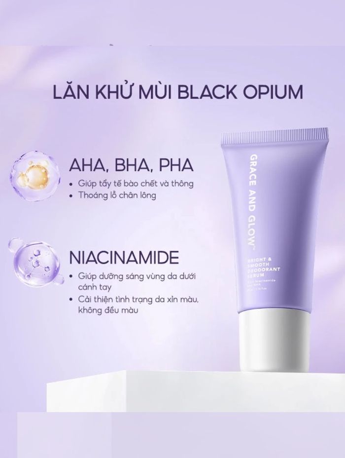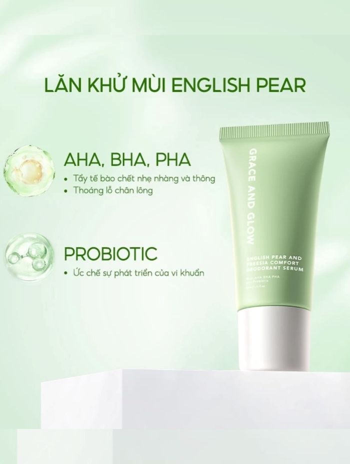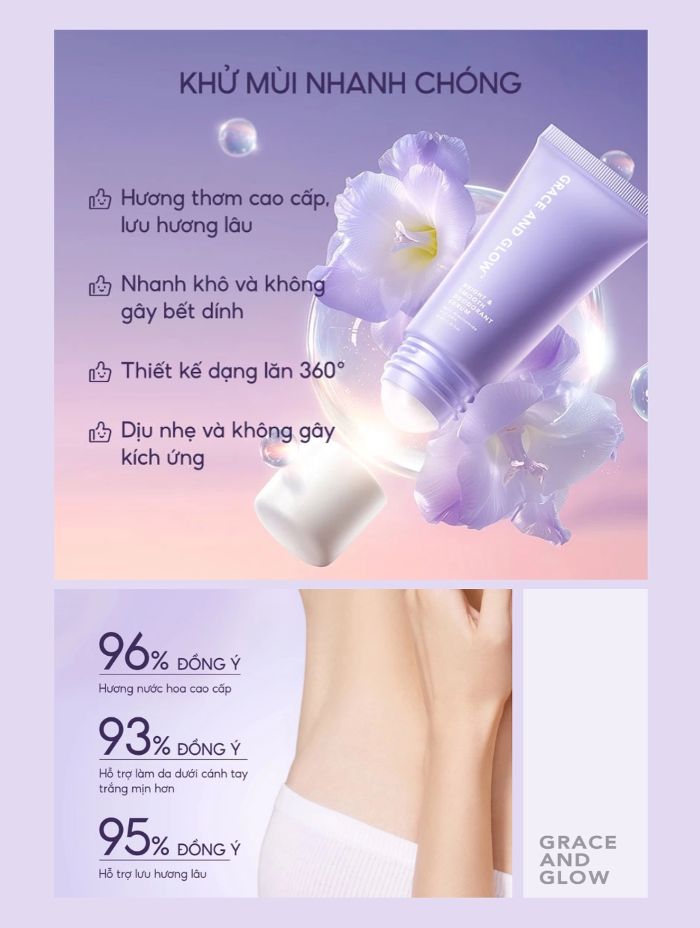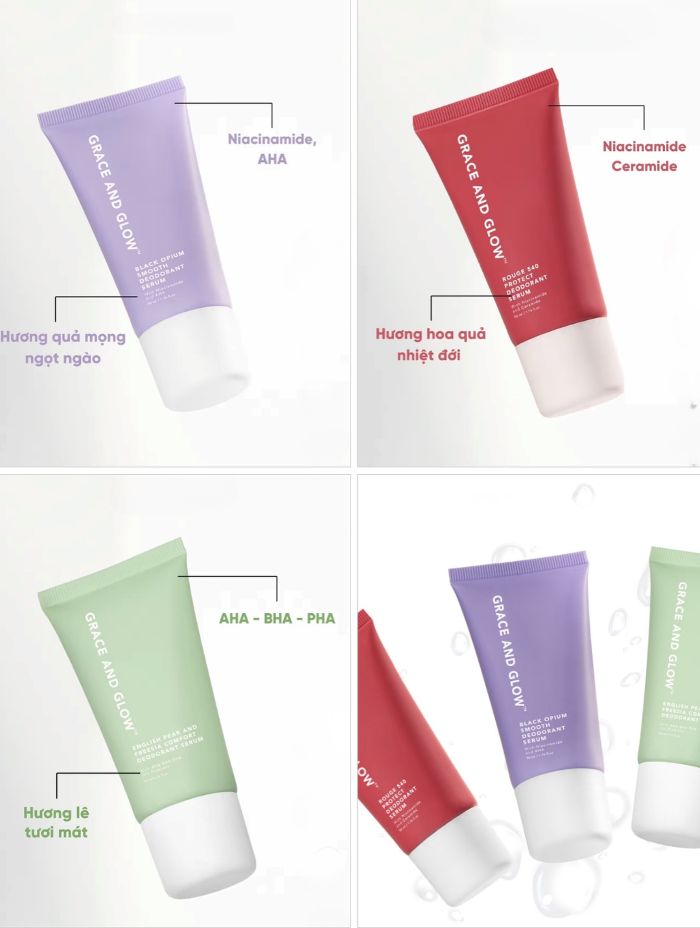 - Grace And Glow Deodorant Serum là lăn khử mùi chăm sóc cho làn da dưới cánh tay của bạn nhẹ nhàng, khô thoáng và thơm mát suốt ngày dài