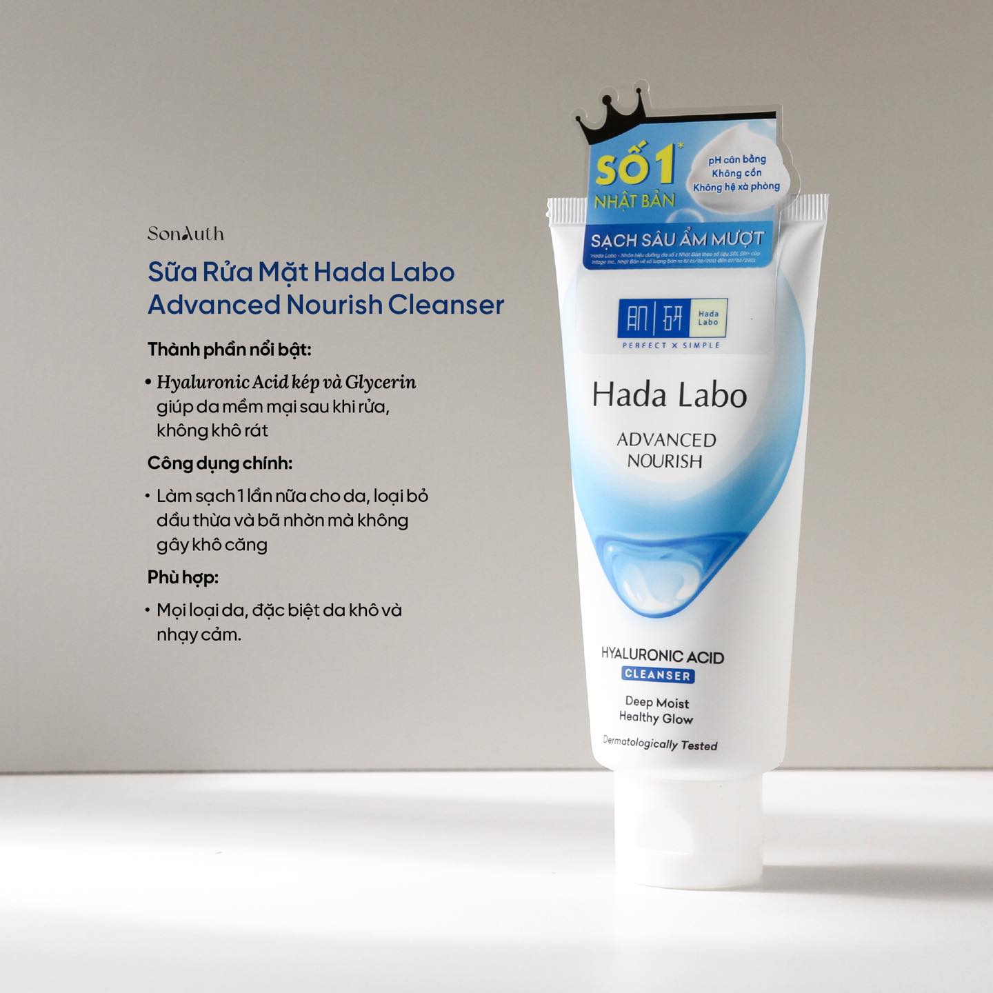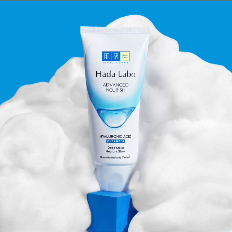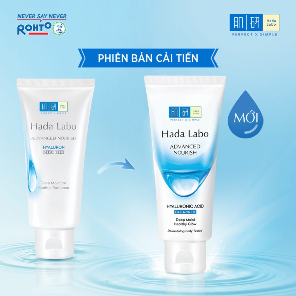 - Sữa rửa mặt Hada Labo Advanced Nourish Cleanser tạo bọt mịn nhẹ nhàng giúp rửa sạch lớp tế bào chết, bụi bẩn và bã nhờn ẩn sâu trong lỗ chân lông