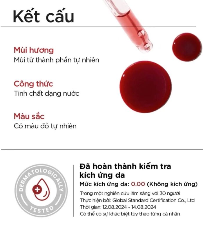Dạng tinh chất hơi sệt, màu đỏ thẫm