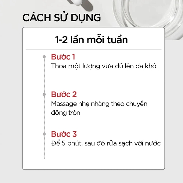 - Sử dụng 1-2 lần/tuần hoặc theo hướng dẫn của chuyên gia da liễu.