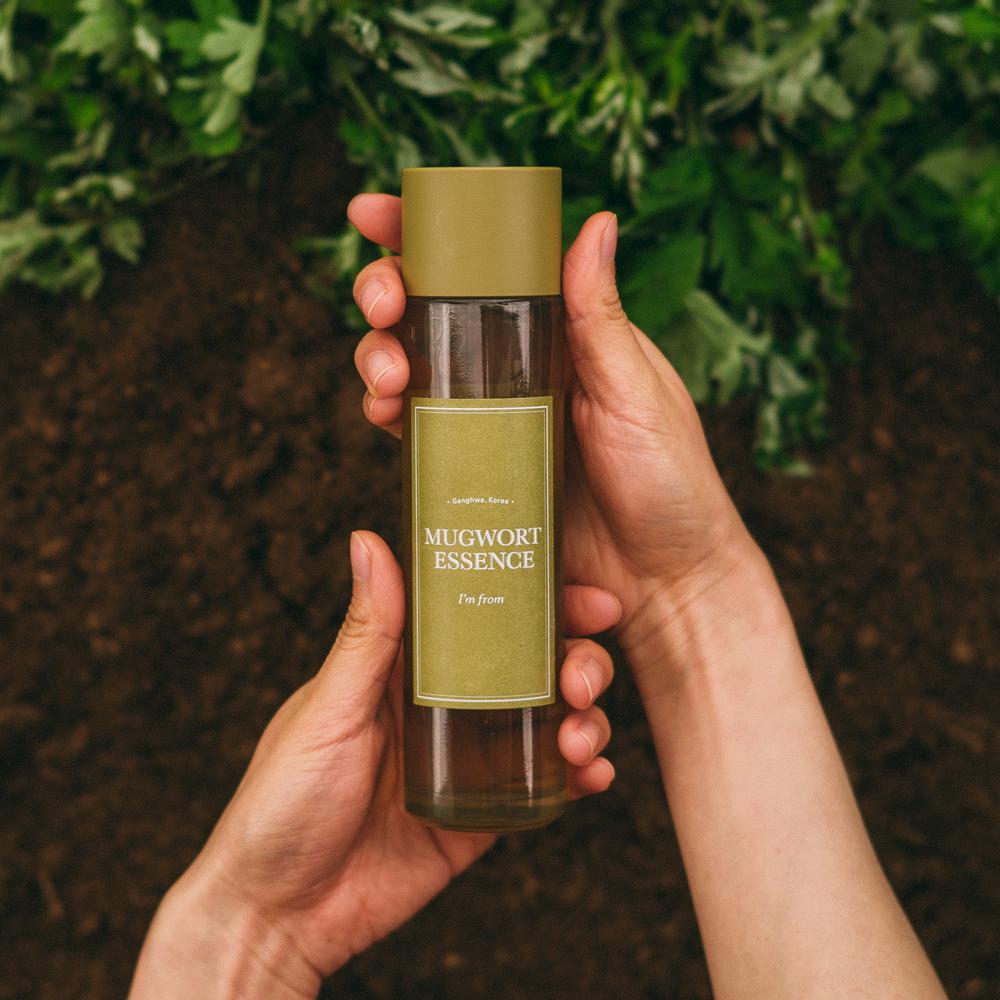 - I'm From Mugwort Essence được gọi là "nước thần" được làm từ ngải cứu được thu hoạch sau khi trồng 3 năm gần khu vực ven biển vùng Ganghwa theo phương pháp truyền thống. Nước thần này chứa 1 thành phần duy nhất là nước ngải cứu đã lên men có tác dụng làm dịu, giảm các tổn thương trên da, thải độc và bảo vệ giúp da khỏe mạnh hơn