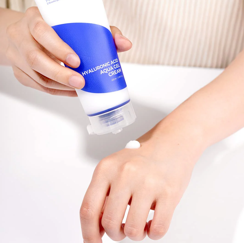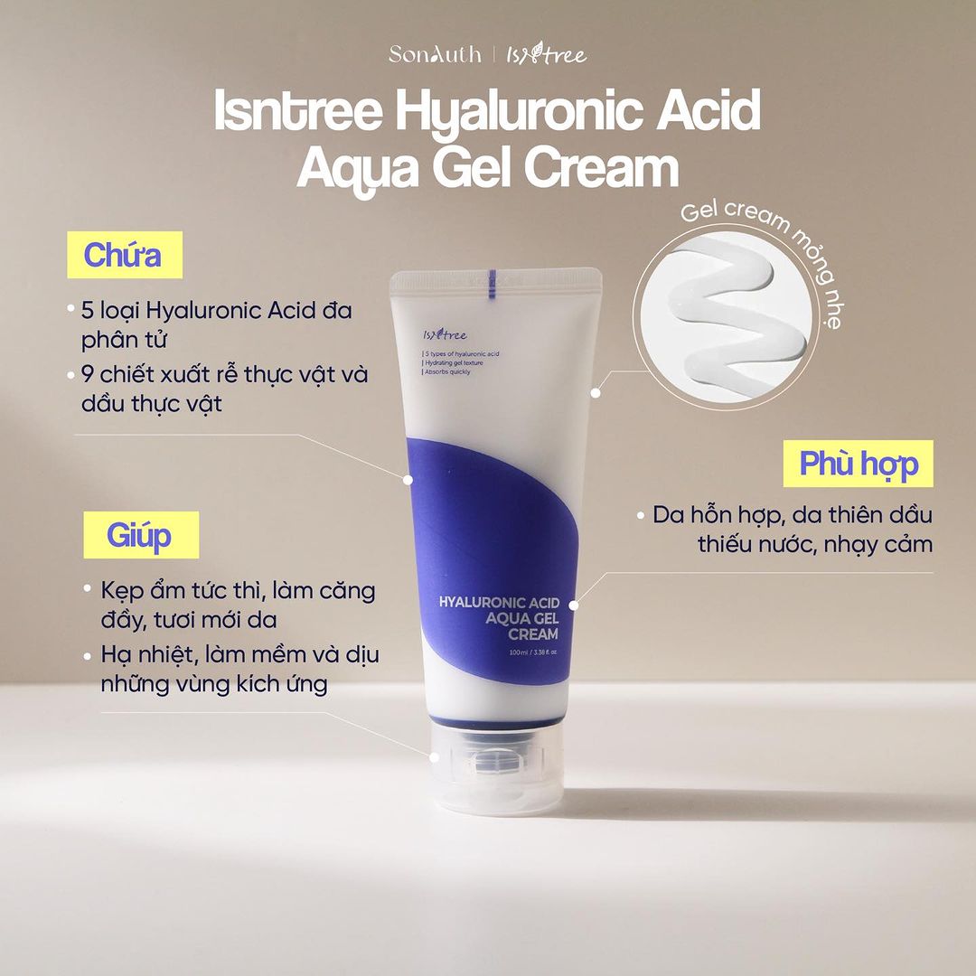- Isntree Hyaluronic Acid Aqua Gel Cream là gel dưỡng ẩm mỏng nhẹ với công thức chăm sóc da căng mịn từ bên trong