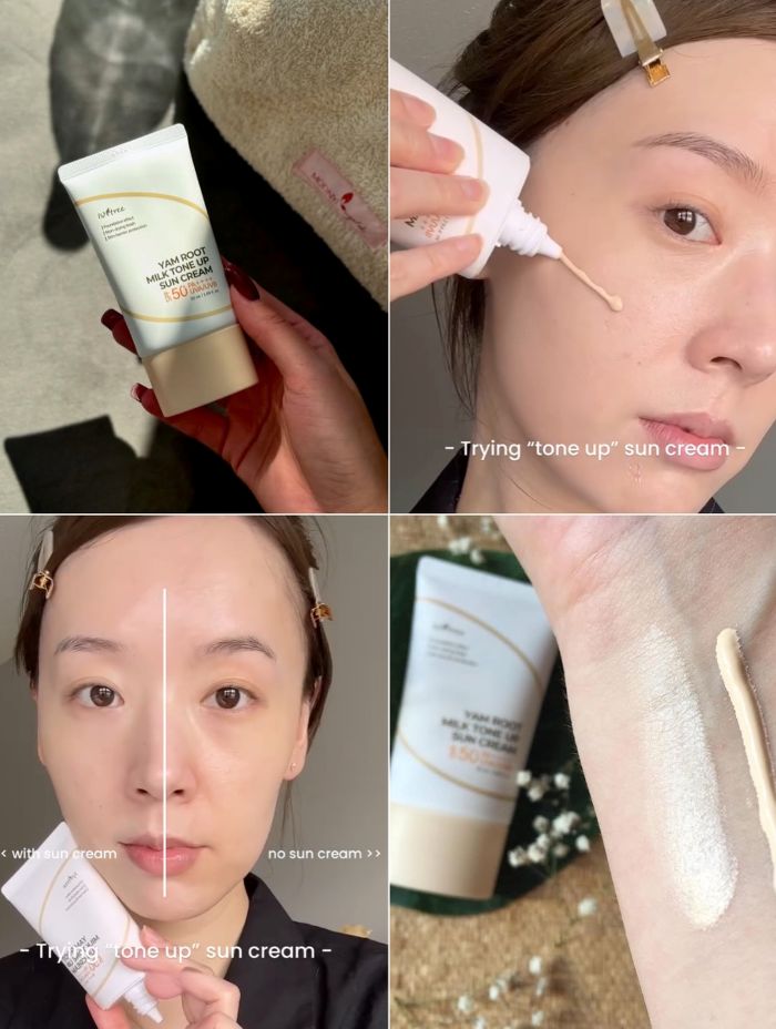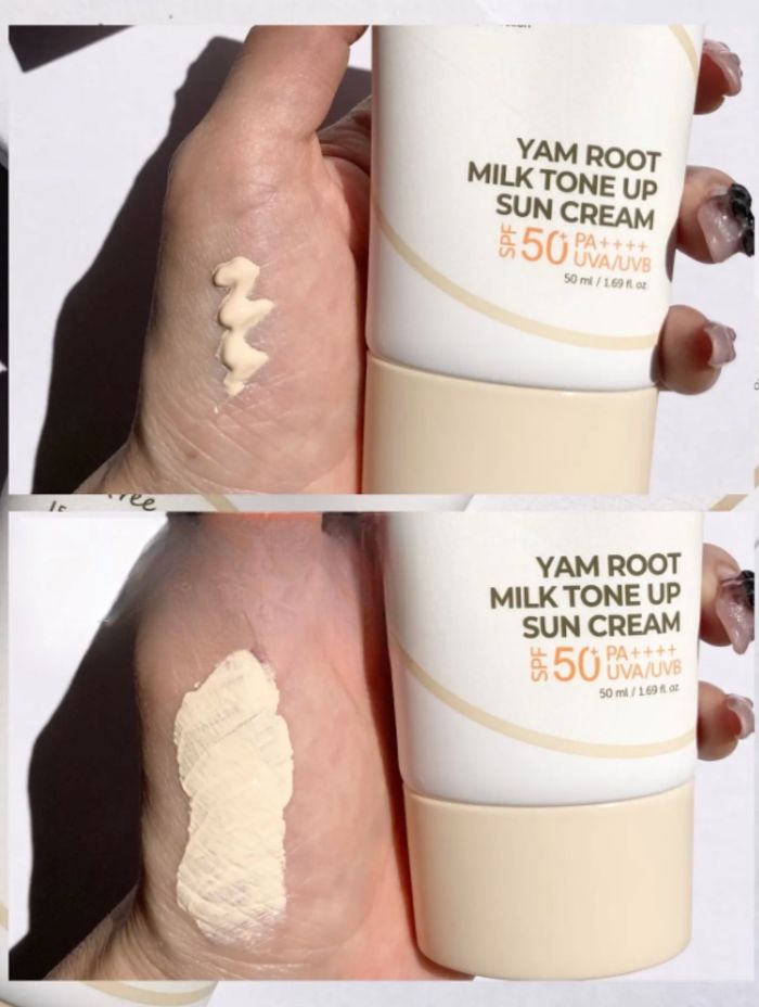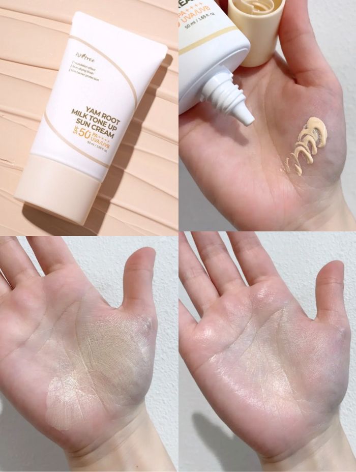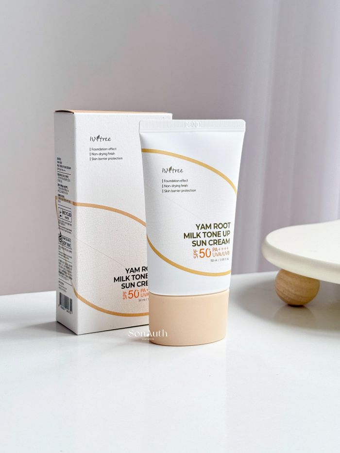 - Isntree Yam Root Milk Tone Up Sun Cream là kem chống nắng nâng tông, màng lọc chống nắng thuần vật lý lành tính