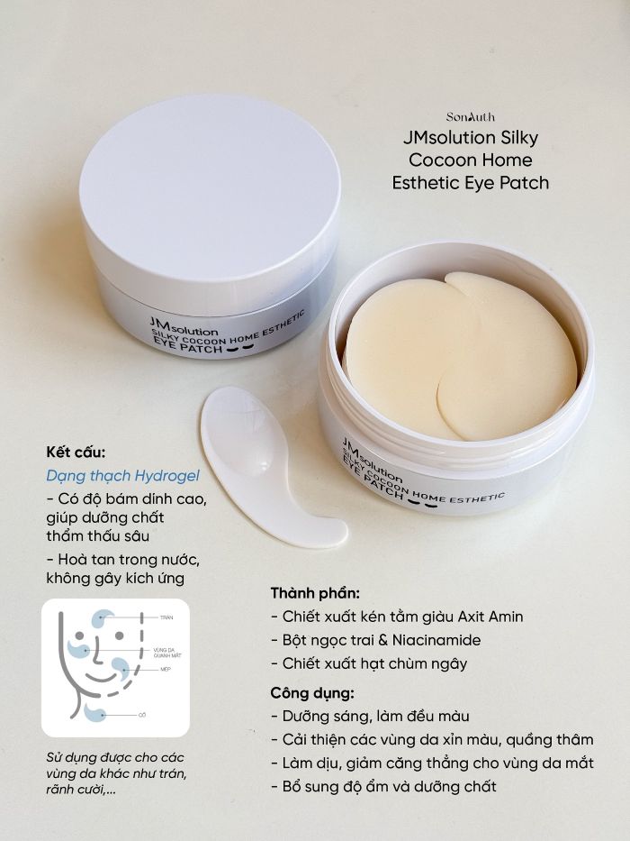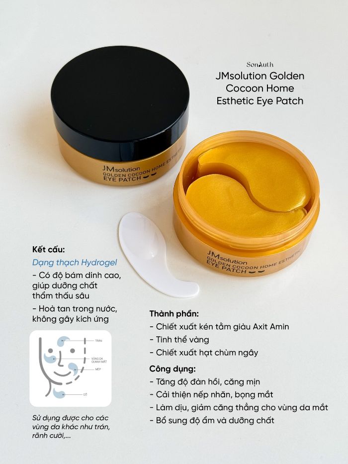 - JMsolution Cocoon Home Esthetic Eye Patch là mặt nạ dạng gel từ Kén Tằm Vàng giúp ngừa lão hóa vùng da mắt mỏng manh