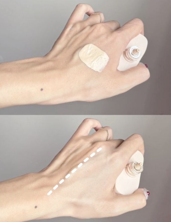 - Kết cấu kem dạng lỏng, siêu nhẹ và mỏng, với kích thước siêu nhẹ chỉ 0.107um, kem không gây bết dính và không làm nặng da