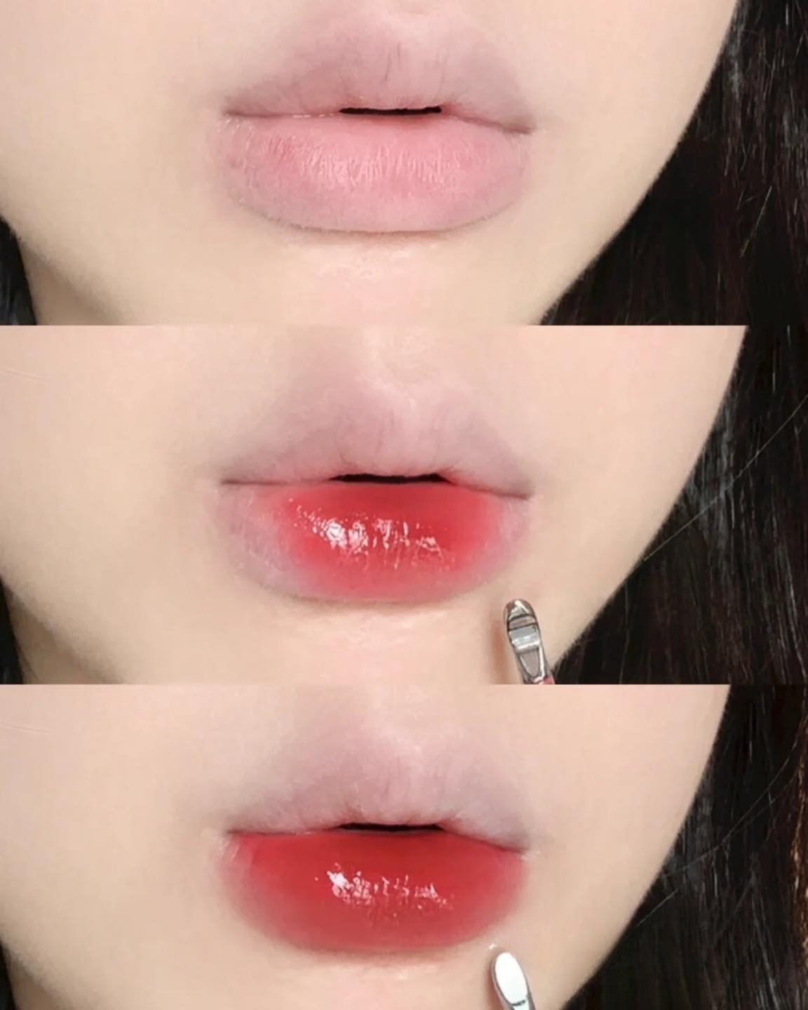 Mở son, dùng cọ son đánh đều lên toàn bộ môi, tránh đánh son tràn viền môi