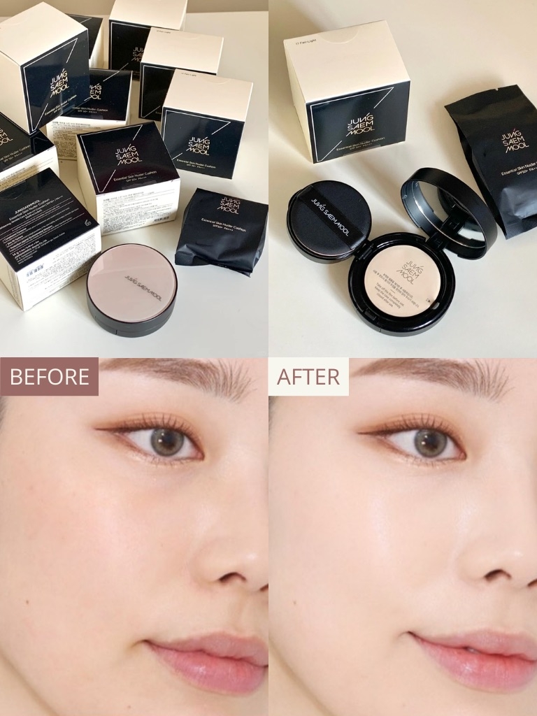 - Phấn nước Jung Saem Mool Essential Skin Nuder với chất phấn nhẹ tênh, có độ che phủ tự nhiên, giúp da đều màu và nhìn khoẻ khoắn hơn