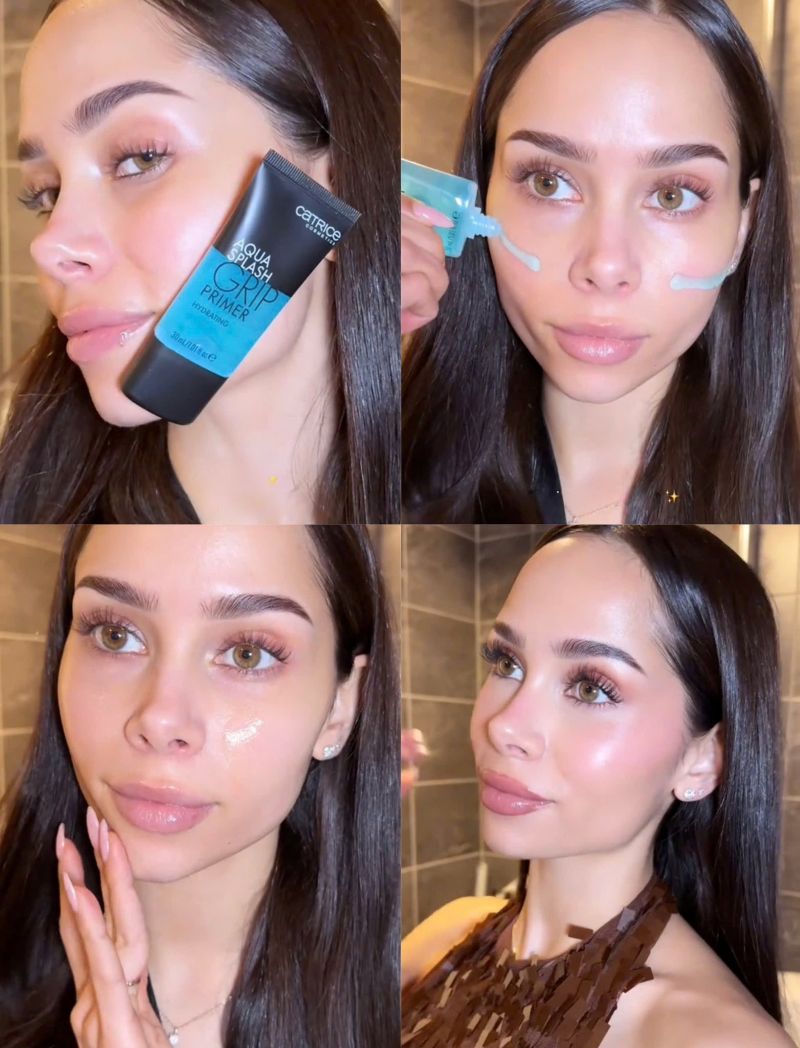 - Kem lót trang điểm Catrice Aqua Splash Grip Primer lành tính, làm mềm da, chuẩn bị 1 nền da mềm mịn, bám phấn hơn