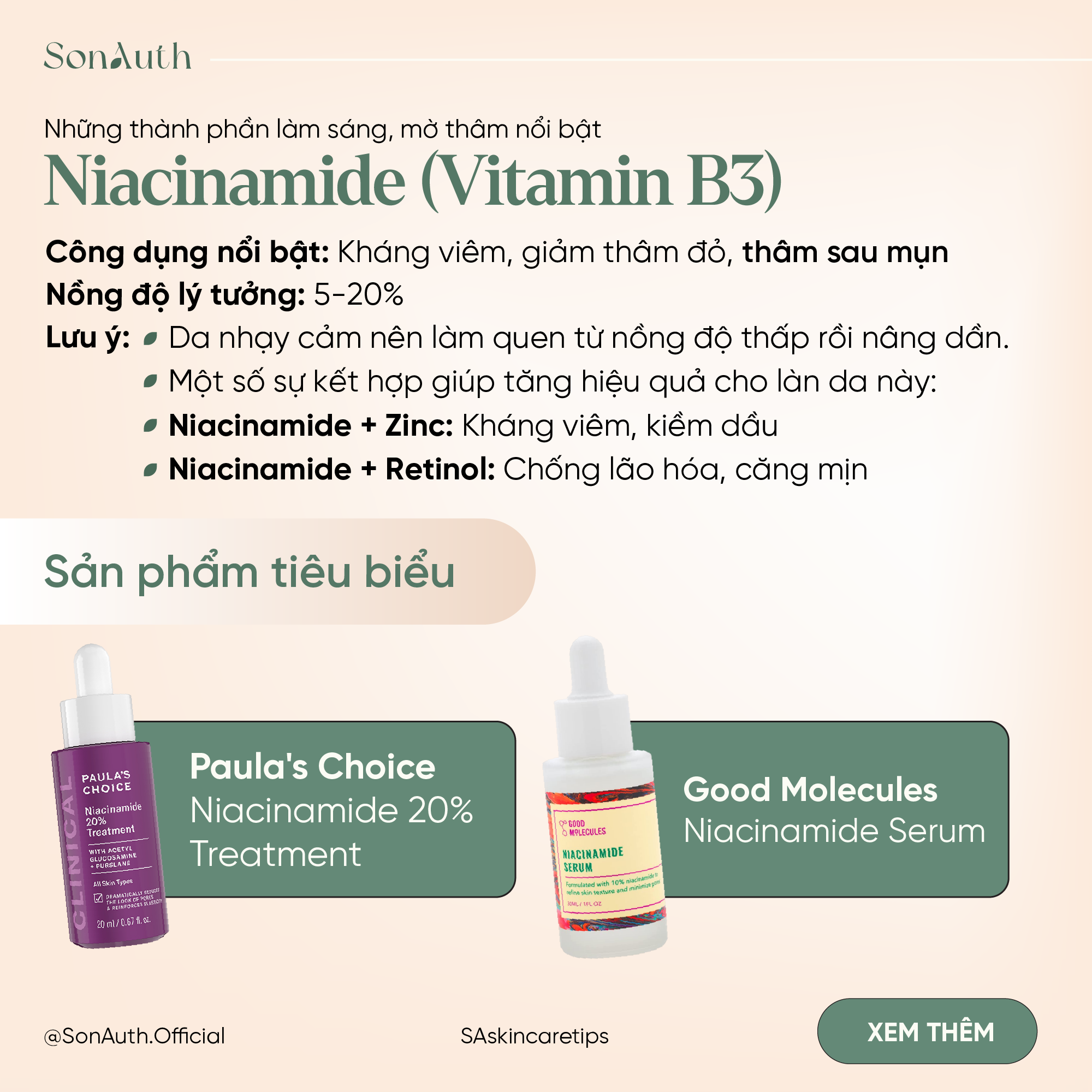Một làn da khỏe là một làn da đẹp. Khi đủ "sức khỏe" da trông rạng rỡ hơn, căng bóng hơn và có khả năng tái tạo tế bào da mới nhanh hơn từ đó giảm thiếu những vấn đề thâm, sạm. Cậu hãy kiên trì xử lý từ những vết thâm mụn, sau đó cải thiện tới nền da xỉn và không đều màu, để làn da chúng mình vừa khỏe vừa đẹp nha. Và để làm điều này thì cần tới những hoạt chất đa-zi-năng không thua kém gì VitC cả, cùng SonAuth tìm hiểu nào 😙