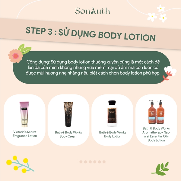 - Sử dụng body lotion thường xuyên cũng là một cách để làn da của mình không những vừa mềm mại đủ ẩm mà còn luôn có được mùi hương nhẹ nhàng nếu biết cách chọn body lotion phù hợp.