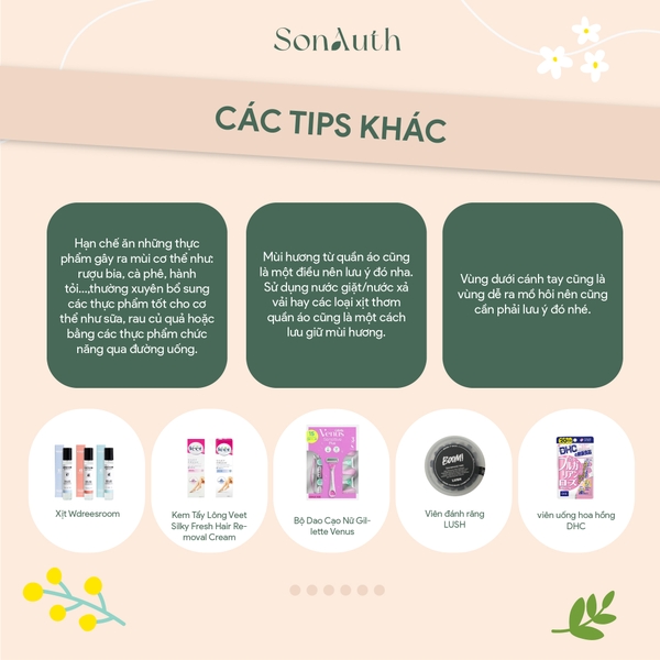 Và chúng mình thích cơ thể có mùi thơm nhưng đâu phải ai cũng thích xịt nước hoa mỗi ngày, vì vậy cần phải tìm những biện pháp khác thay thế cho nó. Nên hãy để SonAuth giới thiệu cho chị em những cách để bản thân thơm tho cả ngày, gây ấn tượng được với những người xung quanh nhé.