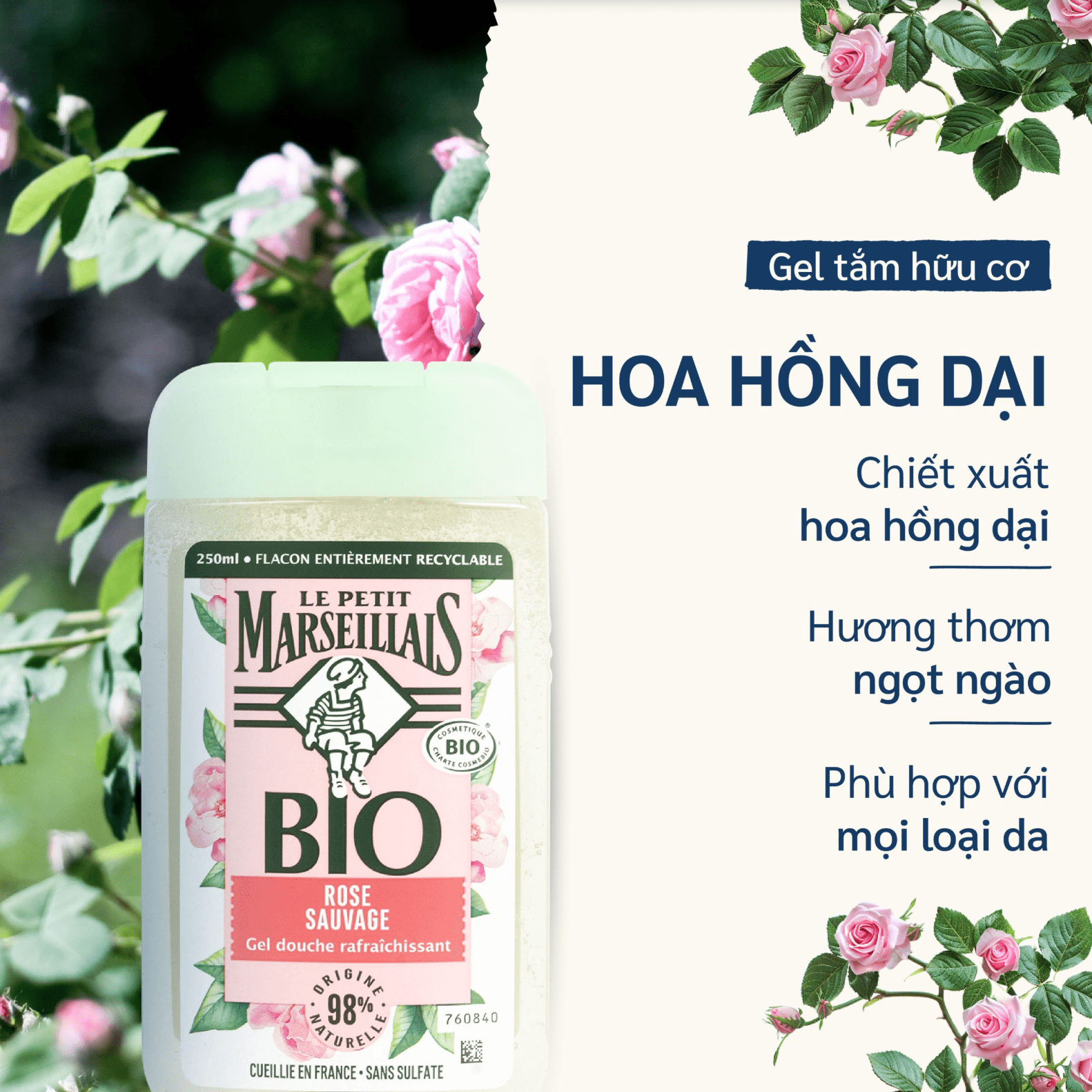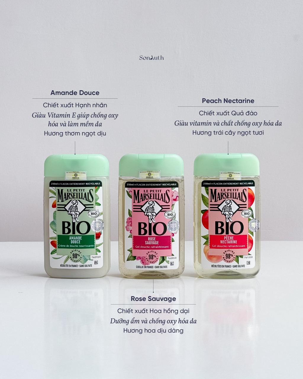 - Le Petit Marseillais Shower Gel 98% Extra là dòng gel tắm hữu cơ với công thức lành tính, êm dịu da