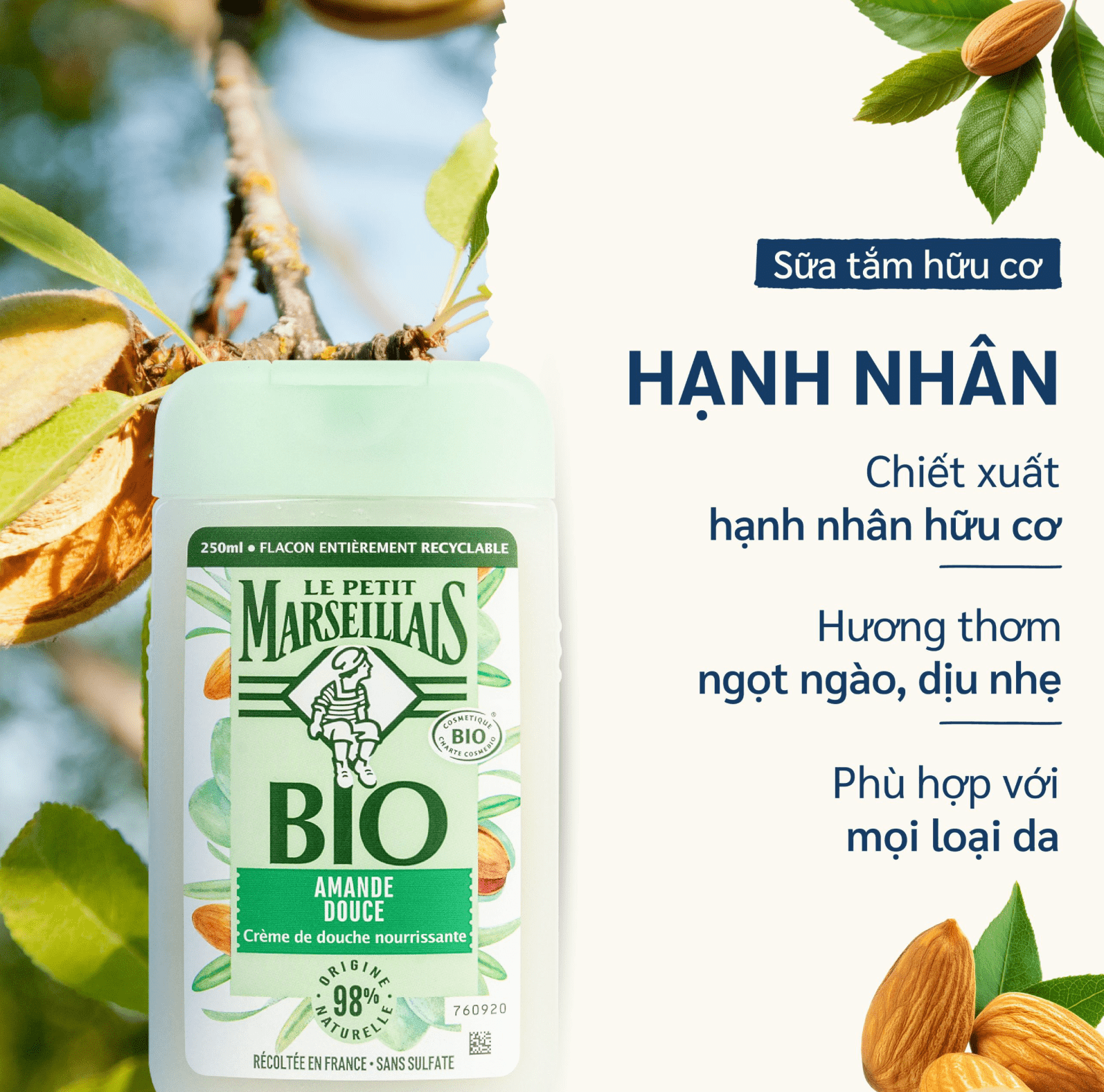 Le Petit Marseillais là thương hiệu chăm sóc cơ thể hàng đầu tại Pháp. Thương hiệu chuyên cung cấp các dòng sản phẩm chăm sóc cơ thể, chăm sóc tóc từ thiên nhiên, với 40 năm hành trình chinh phục 14.8 triệu người Pháp. Tuyên ngôn nhãn hàng hướng tới niềm vui sống giản dị, nhỏ bé mà bất kỳ ai cũng mong muốn. Các sản phẩm của Le Petit Marseillais có màu sắc tươi vui, nhiều mùi hương, mang tới cảm giác dễ chịu khi sử dụng. Sẽ trở thành những món đồ không thể thiếu trong phòng tắm của bạn; cũng sẽ là món quà đầy ý nghĩa dành tặng người thân.