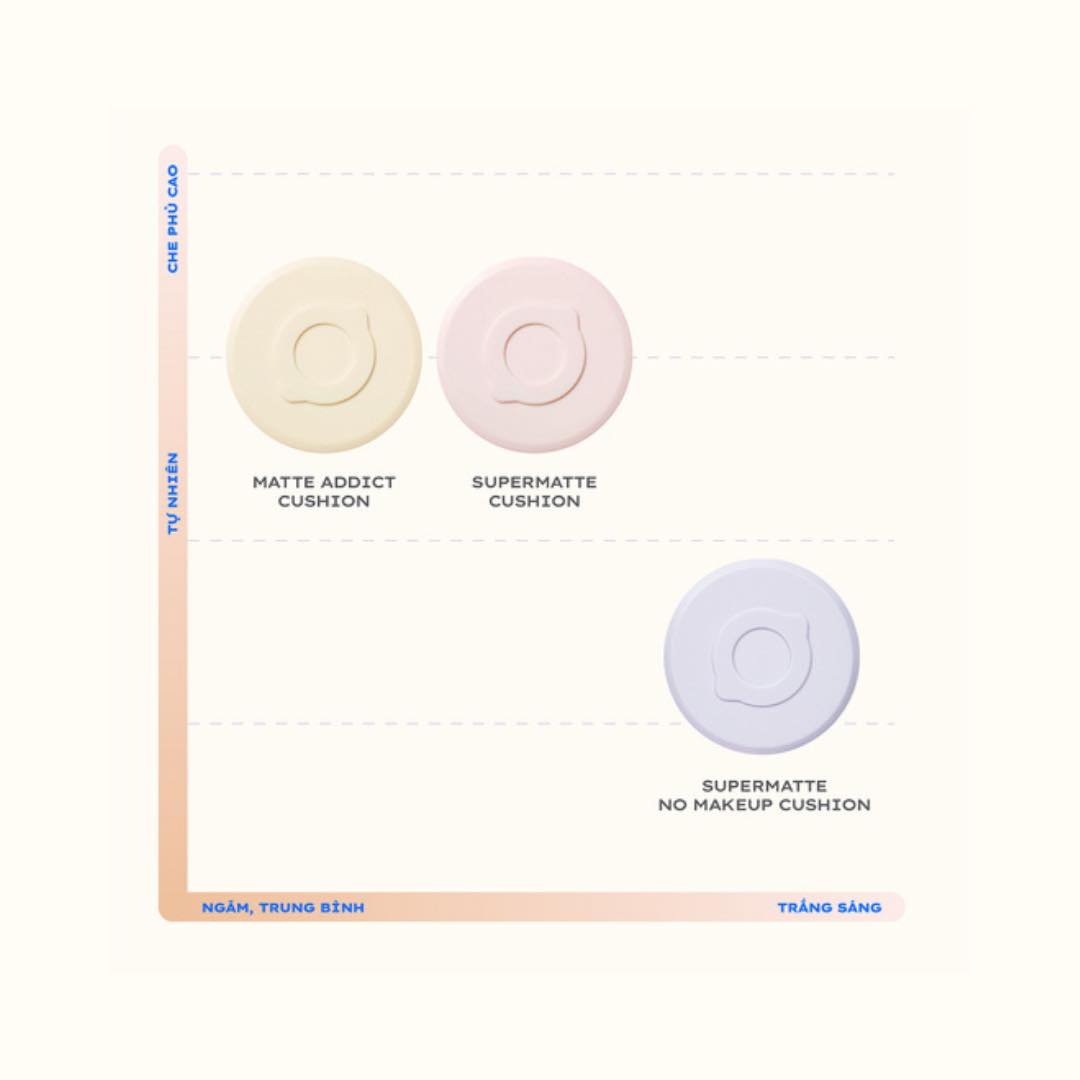 Lemonade quá nổi tiếng với dòng cushion siêu kiềm dầu và có độ che phủ cao. Để tiếp nối thành công đó, Lemonade đã ra mắt thêm dòng cushion SuperMatte No Makeup Cushion cho hiệu ứng mỏng nhẹ tự nhiên như da thật.