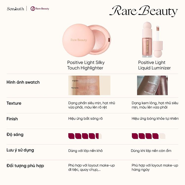 Lựa chọn dòng highlight nào nhà Rare Beauty sẽ phù hợp với layout makeup yêu thích của bạn? Giữa: 𝗥𝗮𝗿𝗲 𝗕𝗲𝗮𝘂𝘁𝘆 𝗣𝗼𝘀𝗶𝘁𝗶𝘃𝗲 𝗟𝗶𝗴𝗵𝘁 𝗦𝗶𝗹𝗸𝘆 𝗧𝗼𝘂𝗰𝗵 𝗛𝗶𝗴𝗵𝗹𝗶𝗴𝗵𝘁𝗲𝗿 và 𝗥𝗮𝗿𝗲 𝗕𝗲𝗮𝘂𝘁𝘆 𝗣𝗼𝘀𝗶𝘁𝗶𝘃𝗲 𝗟𝗶𝗴𝗵𝘁 𝗟𝗶𝗾𝘂𝗶𝗱 𝗟𝘂𝗺𝗶𝗻𝗶𝘇𝗲𝗿..