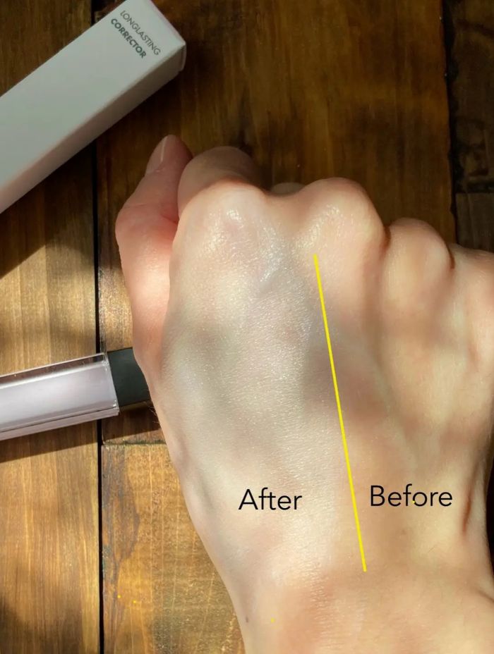 - Khả năng bền màu tốt, có thể chồng lớp cùng cushion/foundation ở trên mà không bị loang lổ, trượt nền cũng như thiết kế tiện lợi với đầu cọ nhỏ giúp linh hoạt che phủ các khuyết điểm ở các vị trí khác nhau.