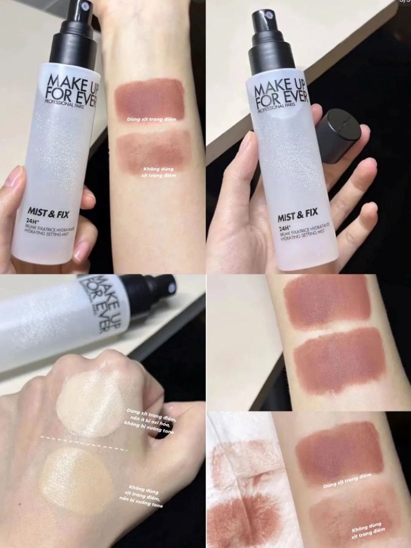 - Make Up For Ever Mist & Fix Setting Spray là xịt khoá nền chuyên dụng giữ lớp trang điểm bền màu suốt 24 giờ mà không làm xê dịch lớp makeup