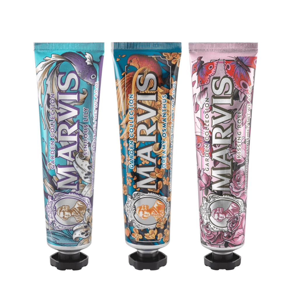 Những bộ sưu tập giới hạn luôn được Marvis chú trọng và làm mới, điển hình là 3 tuýp kem đánh răng độc đáo với cảm hứng từ các loại hoa trong vườn. Ngập tràn hương thơm của hoa cỏ cùng thiết kế bao bì bắt mắt.