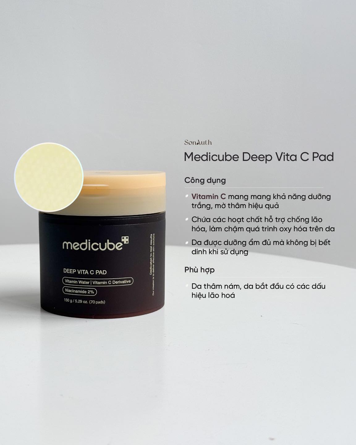 - Medicube Deep Vita C Pad là sản phẩm toner pad giúp cân bằng da ngay sau bước làm sạch