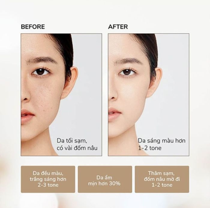 - Hỗ trợ tăng cường hàng rào bảo vệ da, tạo lớp chắn vững chắc trước tia UV, bụi mịn và ô nhiễm, giảm nguy cơ nám quay trở lại, giữ da luôn khoẻ mạnh và tươi sáng dài lâu