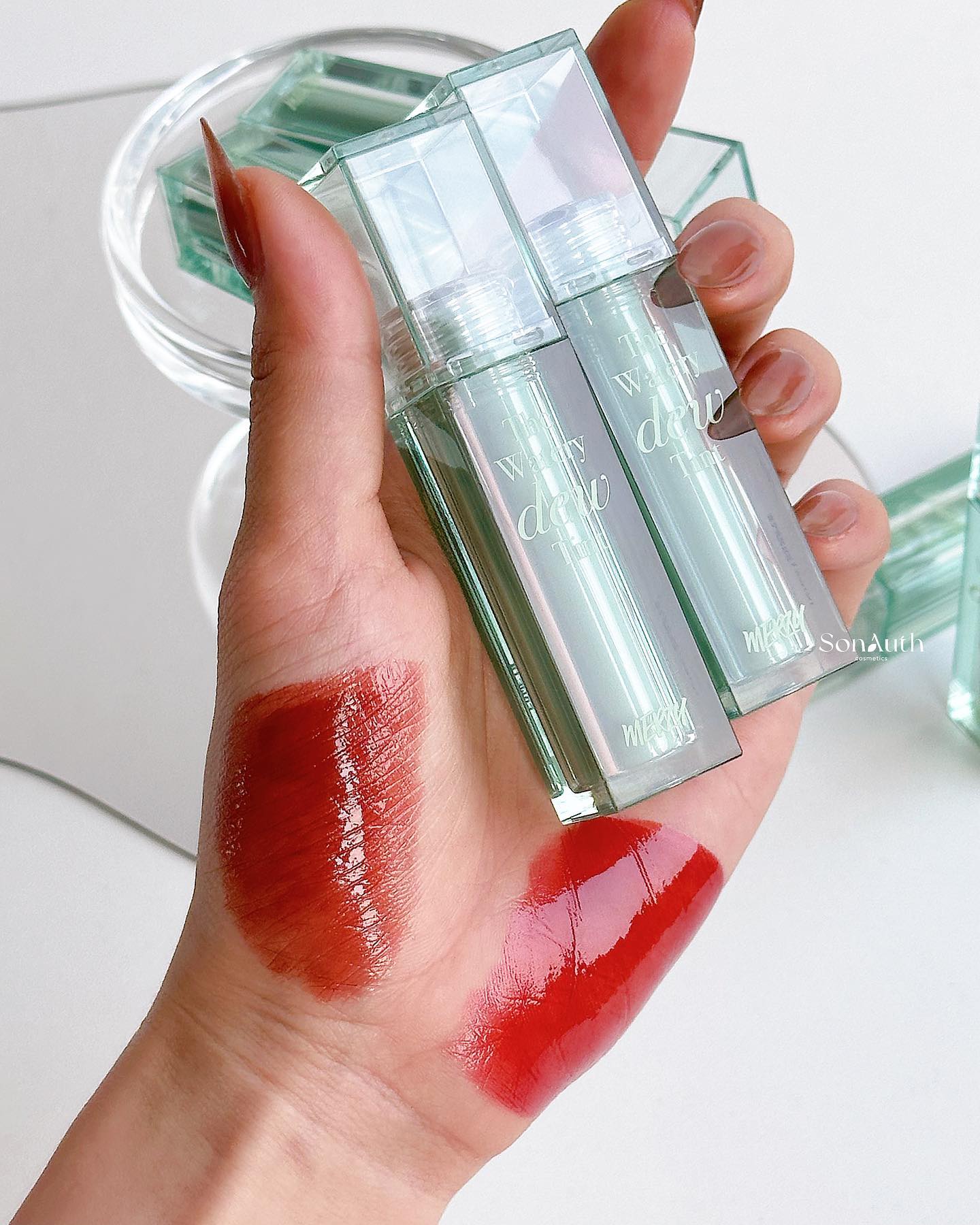 - Merzy The Watery Dew Tint là dòng son nước mang lại hiệu ứng đôi môi căng bóng như nước
