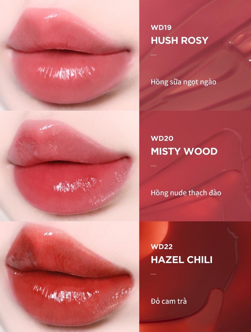 - Son phủ lên đôi môi 1 lớp nước mịn, tạo hiệu ứng “Water Gloss” - căng mọng, trong trẻo, mịn màng như nước