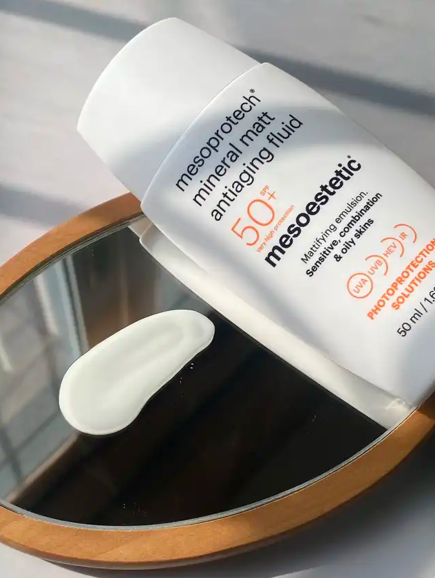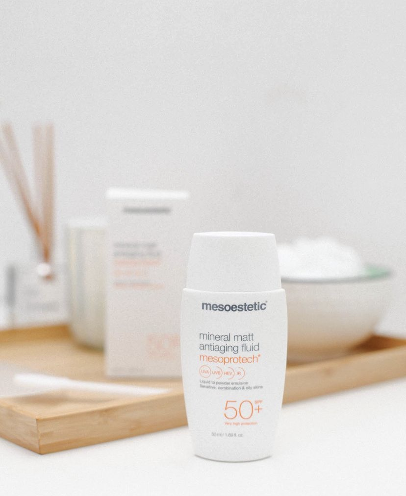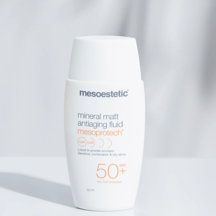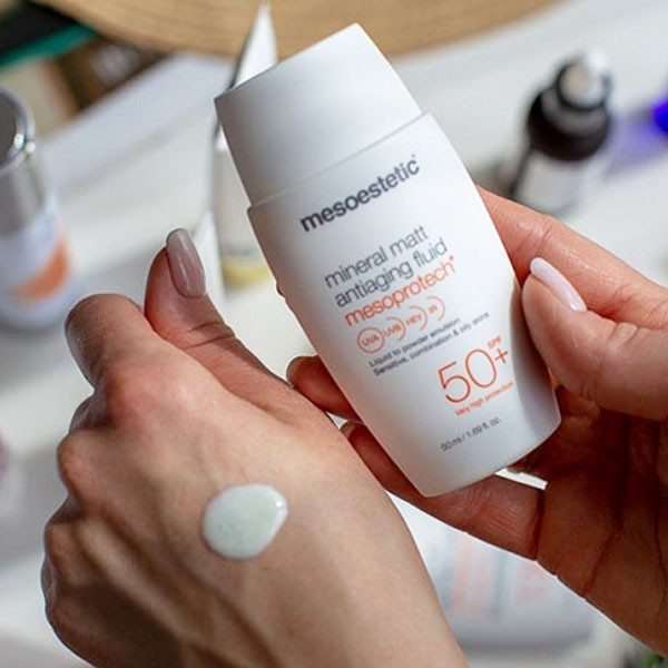 Mesoestetic® Mineral Matt Antiaging Fluid Mesoprotech SPF 50+ làm dòng kem chống nắng nổi tiếng của hãng, với màng lọc được nghiên cứu để chống nắng và các tia đạt tới mức tối đa. Cùng với khả năng chống lão hóa da hiệu quả.