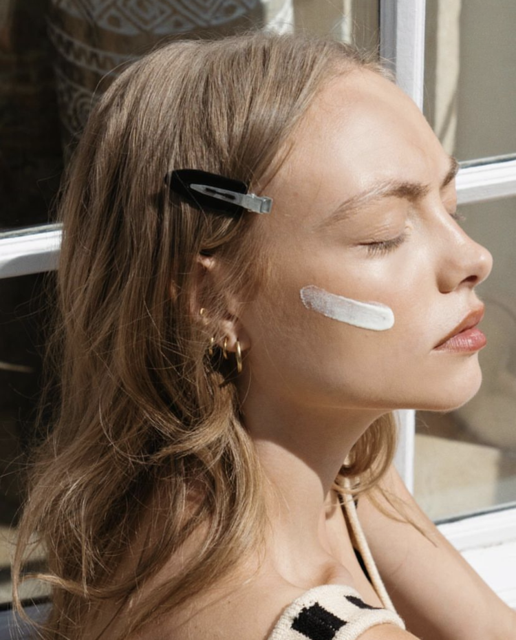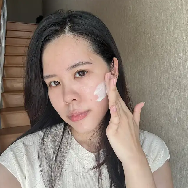 Bước 3: Lấy 1 lượng kem chống nắng vừa đủ thoa đều lên vùng da mặt và cổ. Tránh thoa kem ở vùng có vết thương hở.