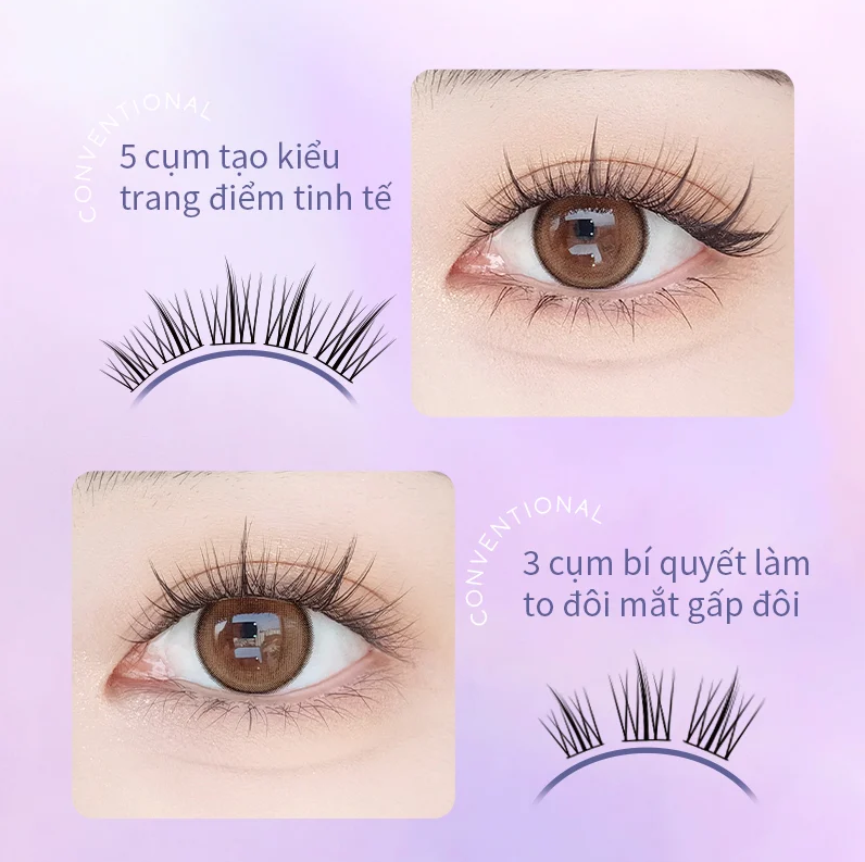 - Lông mi được thiết kế với sợi lông mi dày và dài, tạo nên một hiệu ứng rất ấn tượng. Với hình dạng cong và vòng cung đặc biệt, bộ lông mi giả Mặt Trời và Sao làm cho đôi mắt bạn trở nên cuốn hút và quyến rũ