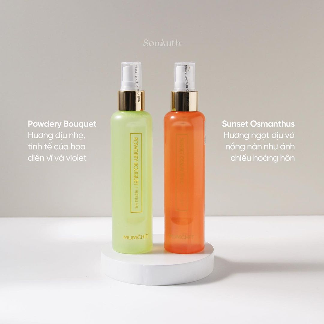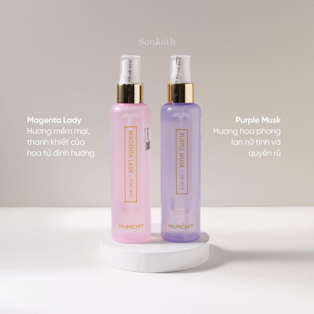 - Hương thơm của Mumchit Hair & Body Mist được tái hiện của dòng nước hoa nổi tiếng Eau de Perfume và được tinh chế bằng công nghệ của Mumchit