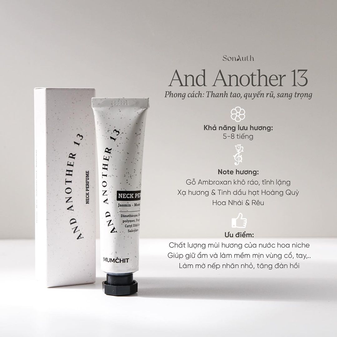 - Nước Hoa Sáp Dành Cho Cổ Mumchit Neck Perfume được nghiên cứu cho ra những mùi hương đình đám thấm dần vào chóp mũi đánh thức các giác quan, để những chuyển động của bạn trở nên mê hoặc, thu hút đối phương