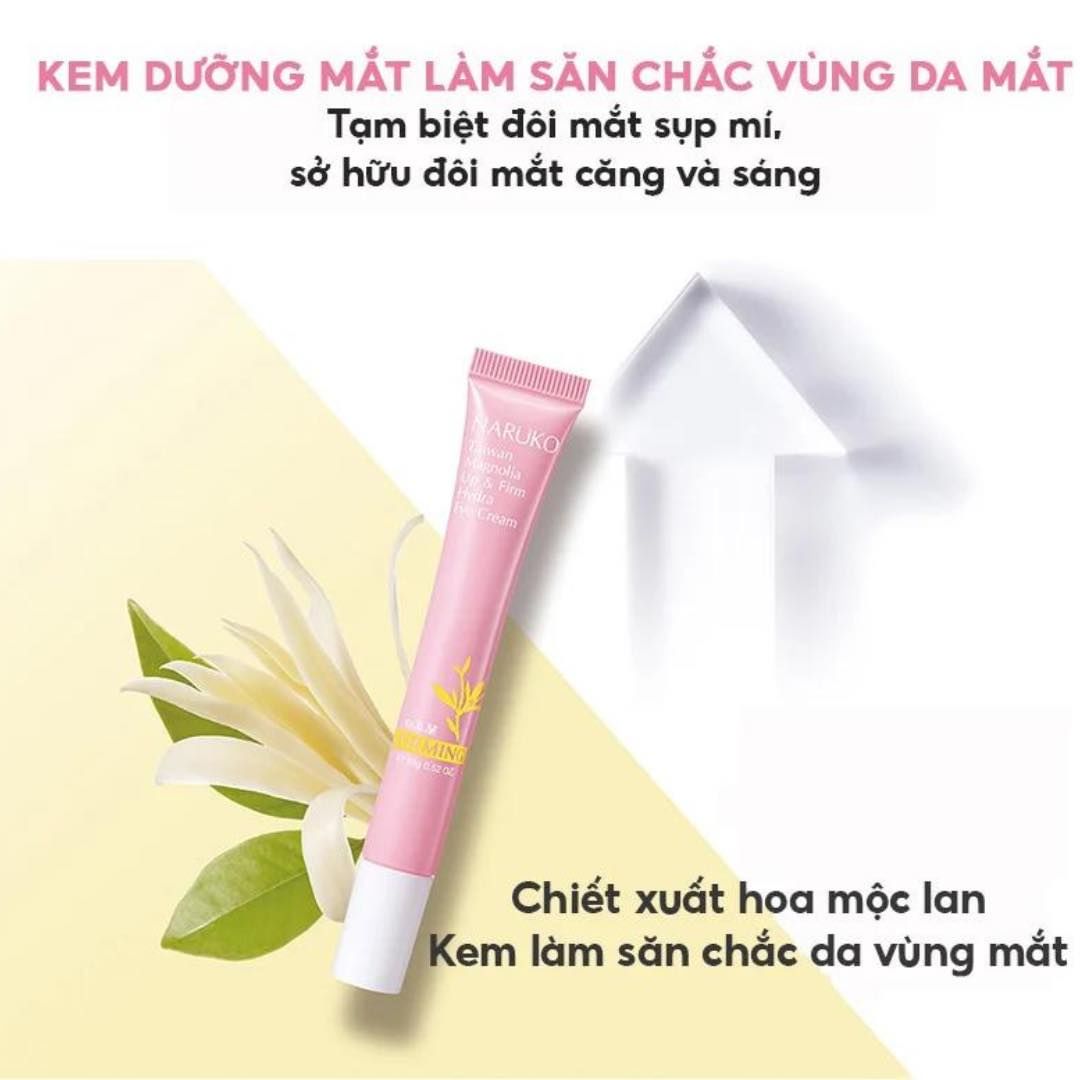 - Naruko Taiwan Magnolia Up & Firm Hydra Eye Cream là kem dưỡng vùng mắt, vừa giúp dưỡng sáng và giúp cải thiện nếp nhăn, làm chậm quá trình lão hoá ở vùng mắt