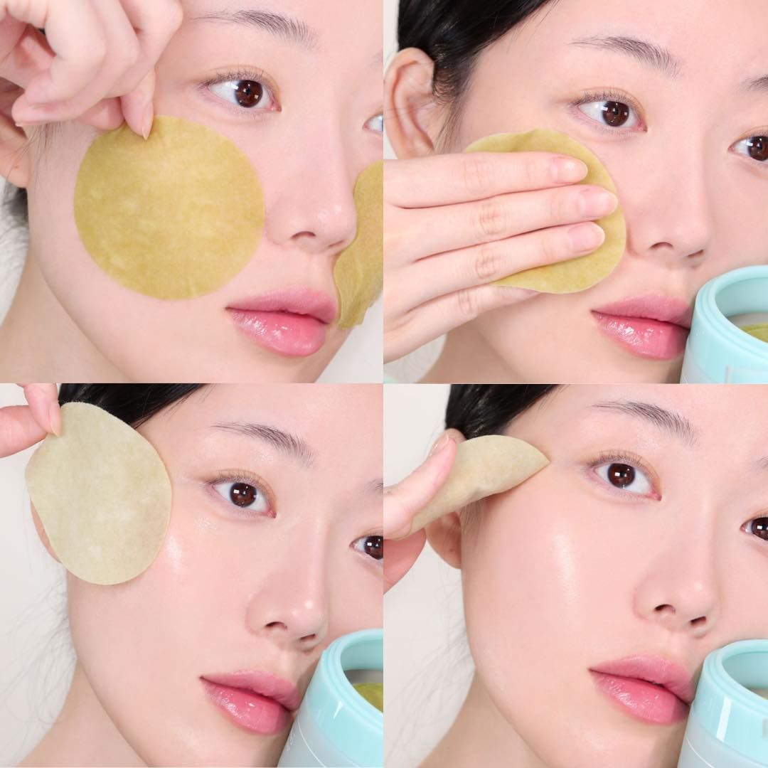 Sau khi rửa mặt sạch, sử dụng ba miếng pad và đặt từng miếng lên trán và má.