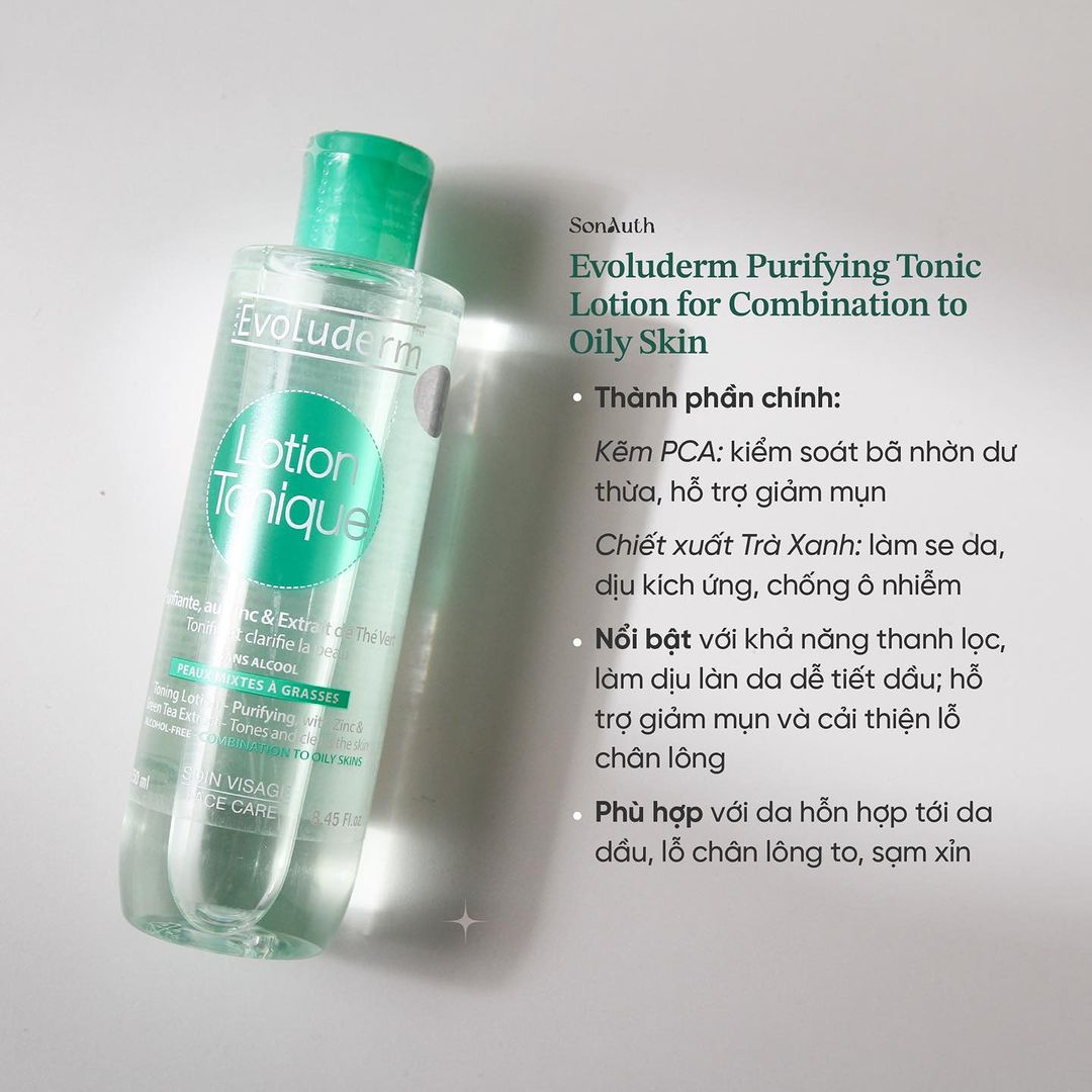 Evoluderm Purifying Tonic Lotion Combination to Oily Skin là bước cân bằng da hiệu quả, lấy lại độ pH lý tưởng sau khi làm sạch da