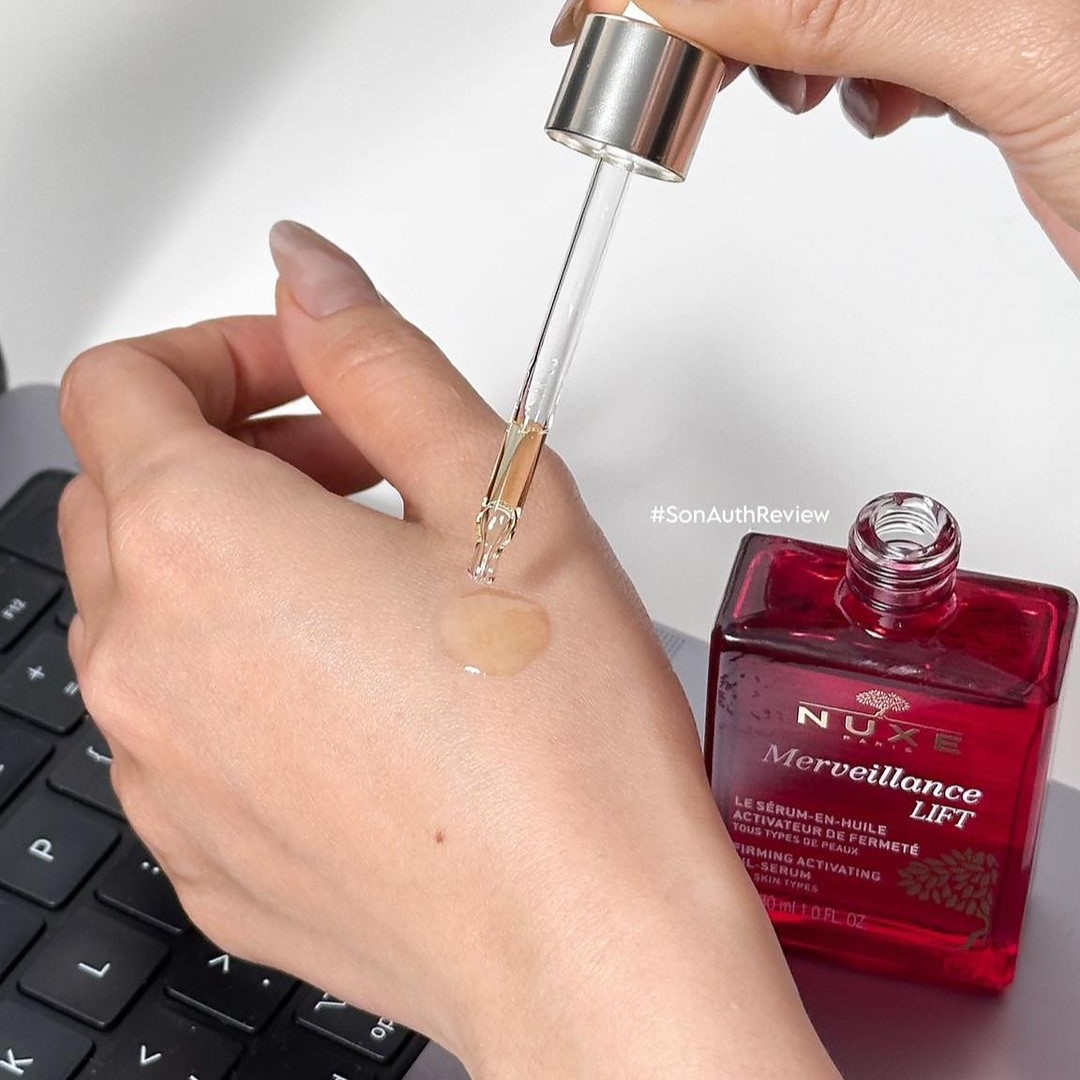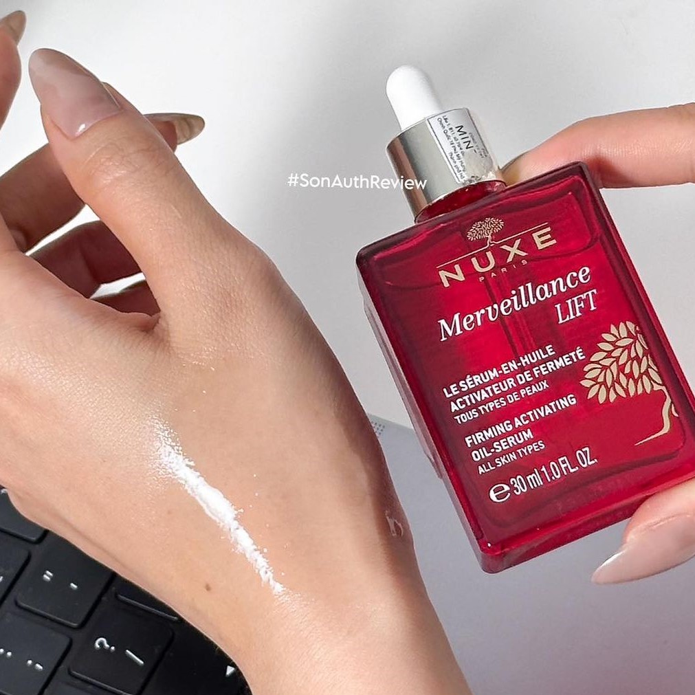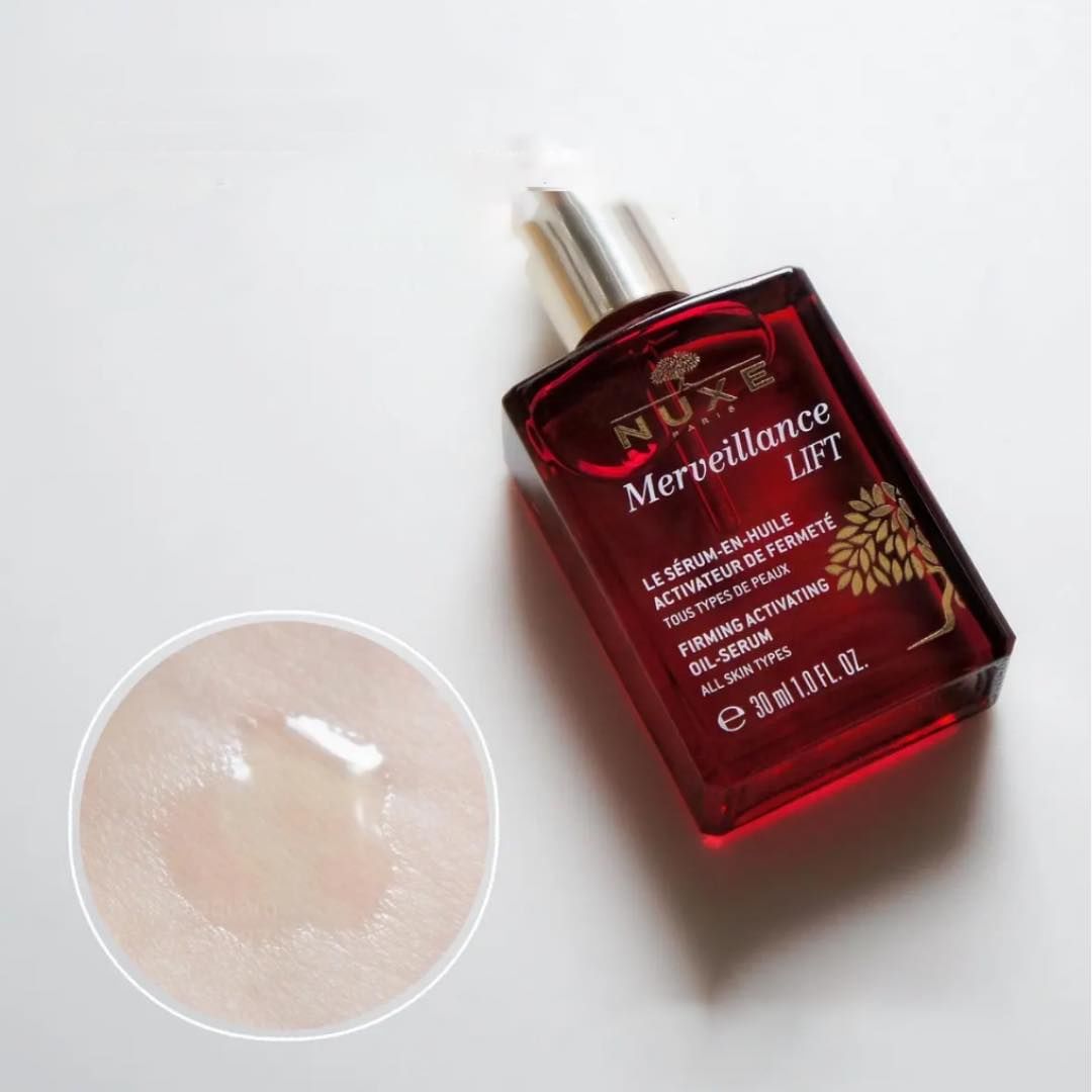 - Nuxe Merveillance Lift Firming Activating Oil Serum có chất serum dầu lỏng, độ tinh khiết cao chính là chìa khóa cho những vấn đề của làn da lão hóa