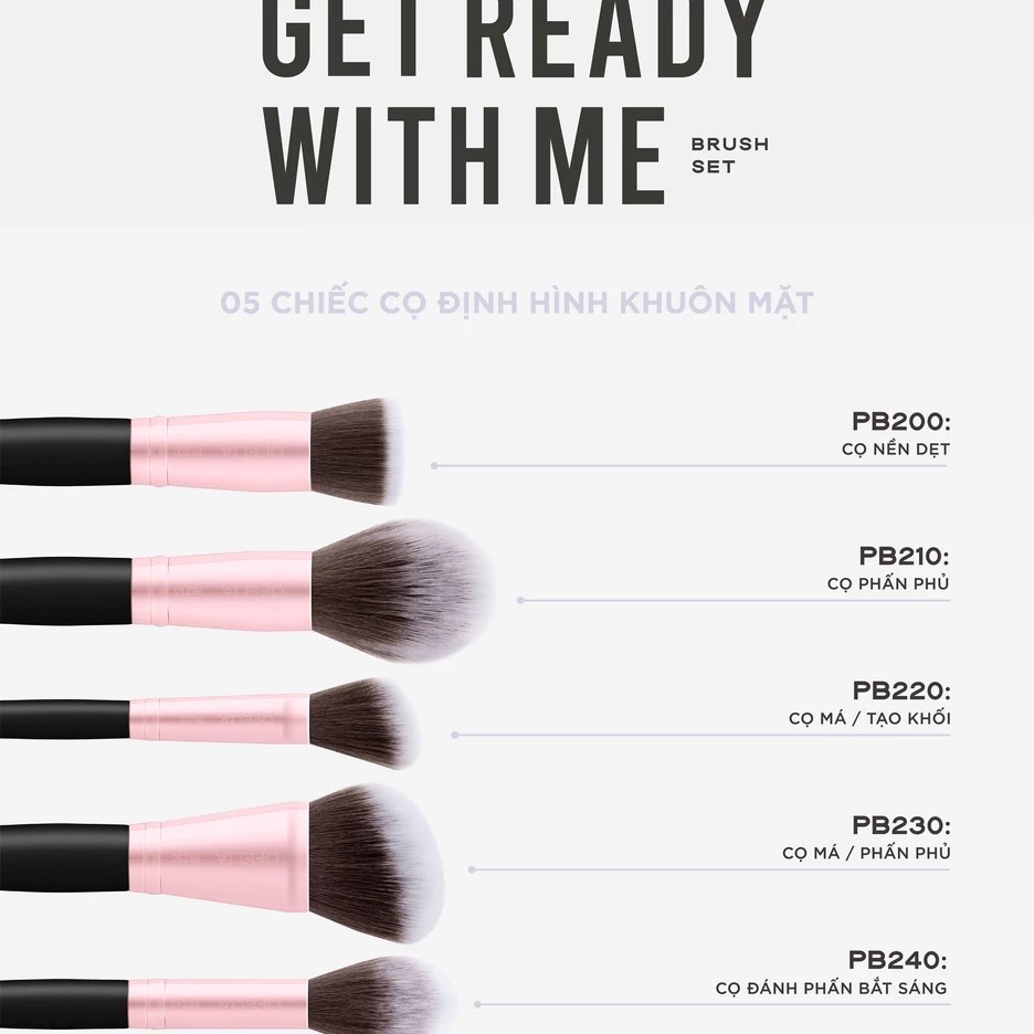 Bộ cọ trang điểm 11 cây Get Ready With Me có thể đáp ứng mọi nhu cầu trang điểm hàng ngày của bạn từ trang điểm nền đến trang điểm toàn diện, bao gồm 5 chiếc cọ định hình khuôn mặt, 6 chiếc cọ chi tiết mắt và môi, phù hợp cho cả người mới bắt đầu và những người yêu thích trang điểm chuyên nghiệp