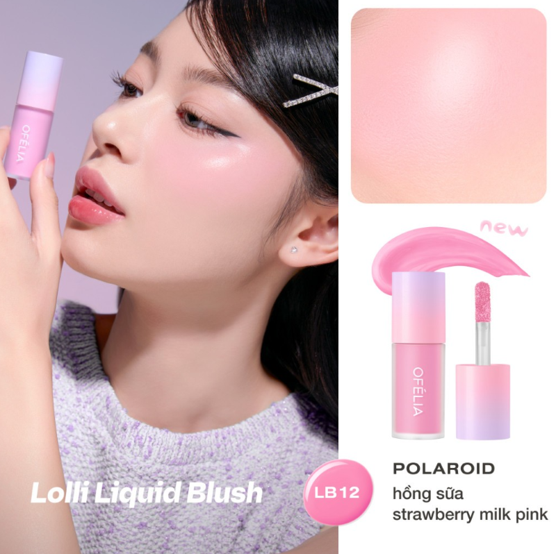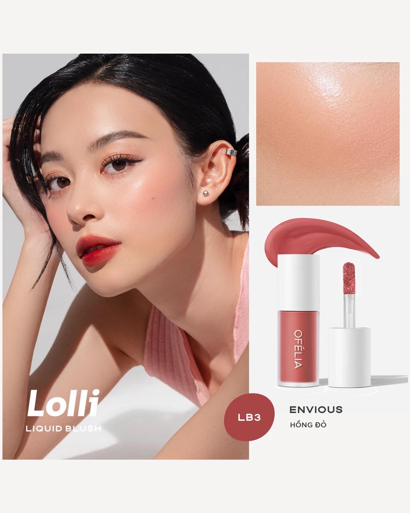 - Lolli Liquid Blush là sản phẩm má hồng có kết cấu dạng kem lỏng đầu tiên của OFÉLIA. Dạng kem nhẹ và mềm mịn, tạo hiệu ứng trong trẻo cho làn da