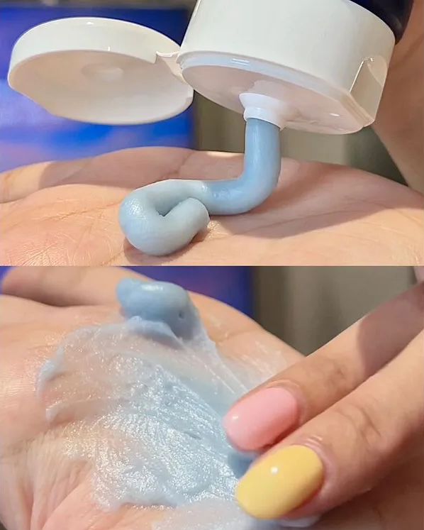 Dạng sáp mềm màu xanh lạ mắt, nhanh chóng hóa lỏng, dễ rửa trôi và không gây bít tắc lỗ chân lông