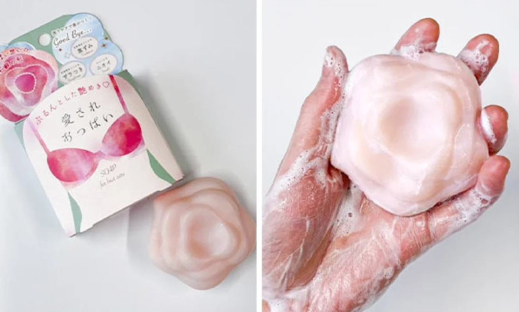 - Sản phẩm thiết kế riêng cho vùng ngực trong thiết kế độc đáo, bánh xà phòng hình bông hoa hồng gợi nhớ tới đường nét vùng ngực. Bánh xà phòng thiết kế có các tầng, phần lõm lớn ở giữa để bạn tắm trực tiếp vùng đỉnh ngực. Các phần lõm xung quanh để cầm nắm dễ dàng, đồng thời bề mặt không bằng phẳng cùng nhẹ nhàng mát-xa khe ngực và ngực, thúc đẩy quá trình lưu thông máu