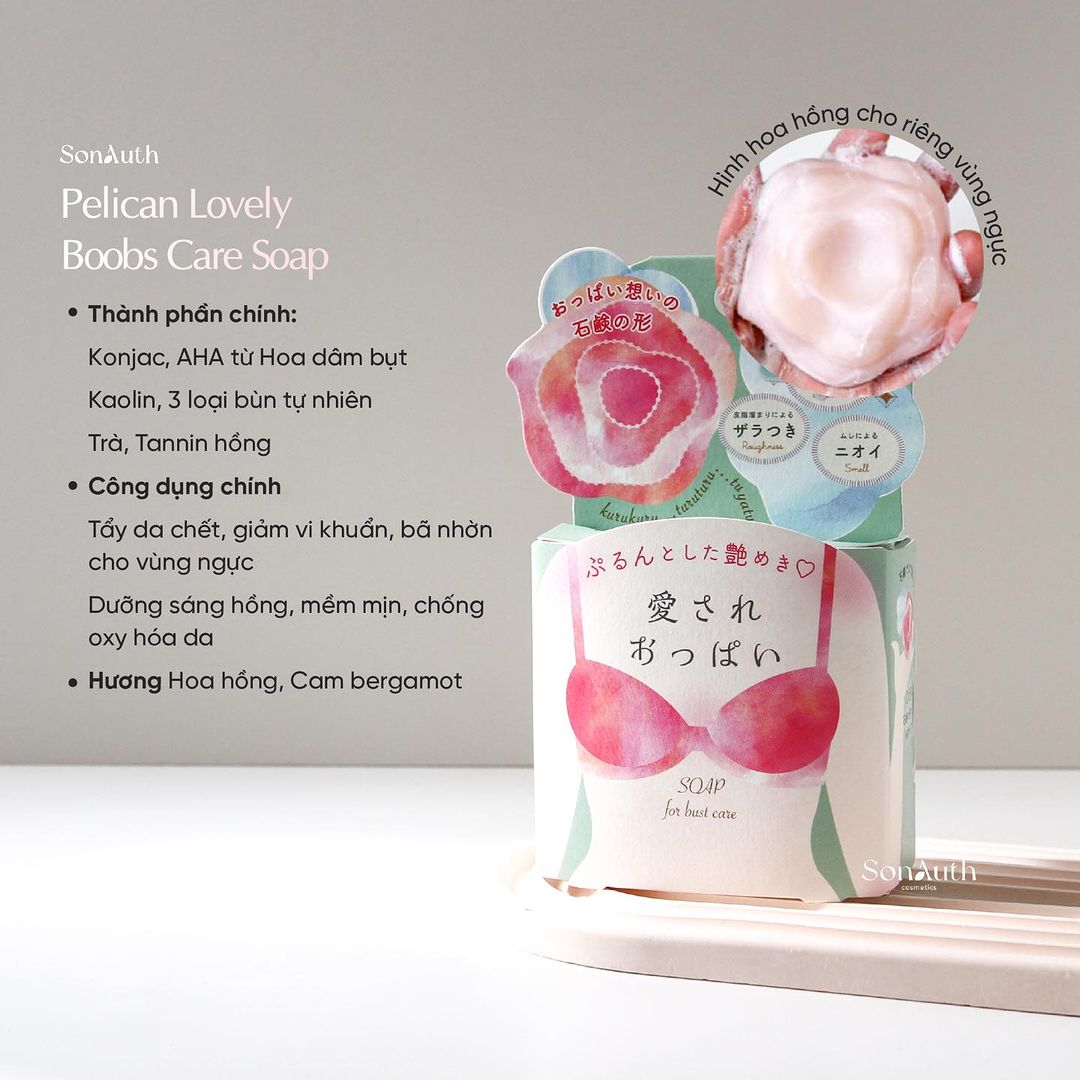 Pelican Lovely Boobs Care Soap là sản phẩm xà phòng dành cho vùng ngực nhạy cảm được thiết kế riêng. Vùng da này không bằng phẳng lại dễ gặp tình trạng mụn, sạm màu. Việc lựa chọn sản phẩm tắm hàng ngày đã được Pelican quan tâm đặc biệt tới giúp việc chăm sóc vùng da nhạy cảm này của bạn dịu nhẹ và hiệu quả hơn.