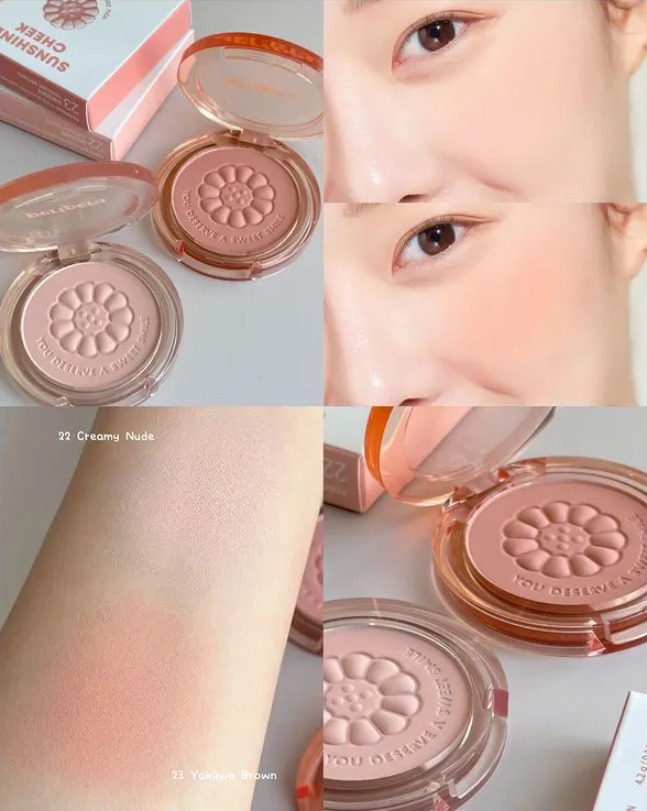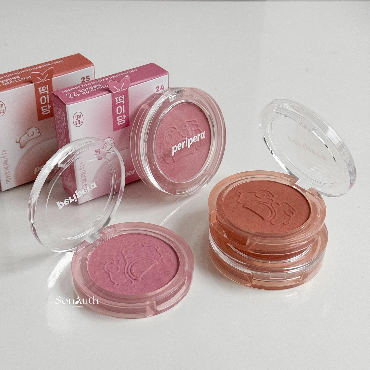 - Peripera Peripera Sunshine Cheek là dòng phấn má được yêu thích của hãng. Thiết kế hộp phấn nhỏ gọn, xinh xắn kèm lời nhắn truyền cảm hứng giúp cho đôi má bạn ửng hồng tự nhiên