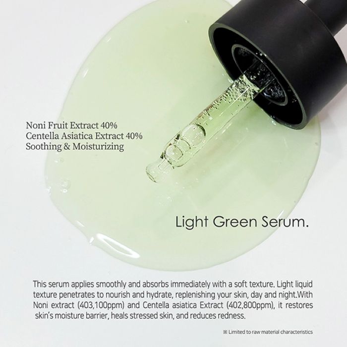 Centella Asiatica Extract (40.68%), Morinda Citrifolia Fruit Extract (40.28%), Glycerin, 1,2-Hexanediol, Water, Butylene Glycol, Niacinamide, Glycereth-26, Diethoxyethyl Succinate, Polyglyceryl-10 Laurate, Propanediol, Portulaca Oleracea Extract, Acrylates/C10-30 Alkyl Acrylate Cross Polymer, Chamomilla Recutita (Matricaria) Flower Extract, Vitex Agnus Castus Extract, Allantoin, Diospyros Kaki Leaf Extract, Panthenol (1,000Ppm), Vitis Vinifera (Grape) Fruit Extract, Tromethamine, Polygonum Cuspidatum Root Extract, Coffea Arabica (Coffee) Seed Extract, Carthamus Tinctorius (Safflower) Flower Extract, Castanea Crenata (Chestnut) Shell Extract, Camellia Sinensis Leaf Extract, Monarda Didyma Leaf Extract, Zanthoxylum Piperitum Peel Extract, Ethylhexylglycerin, Dipotassium Glycyrrhizate, Xanthan Gum, Adenosine, Melia Azadirachta Leaf Extract, Buteth-3, Dipropylene Glycol, Disodium EDTA, Anthemis Nobilis Flower Oil, Ocimum Basilicum (Basil) Leaf Extract, Pentylene Glycol, Salvia Officinalis (Sage) Leaf Extract, Thuja Occidentalis Leaf Oil, Sodium Benzotriazolyl Butylphenol Sulfonate, Sodium Hyaluronate, Melia Azadirachta Flower Extract, Theobroma Cacao (Cocoa) Extract, Dextrin, Citrus Aurantium Amara (Bitter Orange) Flower Extract, Morinda Citrifolia Seed Oil, Tributyl Citrate, Caprylic/Capric Triglyceride, Adansonia Digitata Seed Oil, Hydrogenated Lecithin, Ceramide NP, Hydrogenated Phosphatidylcholine, Sucrose Stearate, Cetearyl Alcohol, Ceramide NS, Ceramide AS, Capryloyl Salicylic Acid, Ethylhexyl Palmitate, Ceramide AP, Ceramide EOP, Asiatic Acid, Asiaticoside, Madecassic Acid, Madecassoside, Pinus Pinaster Bark Extract