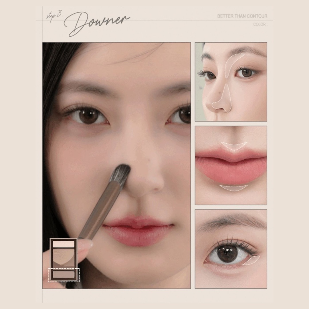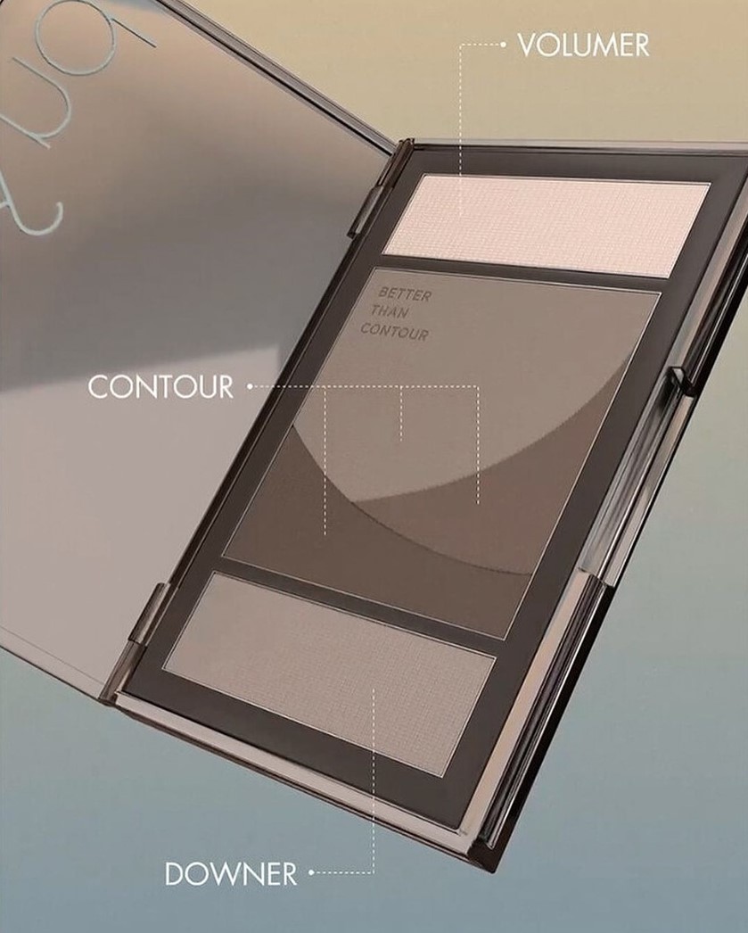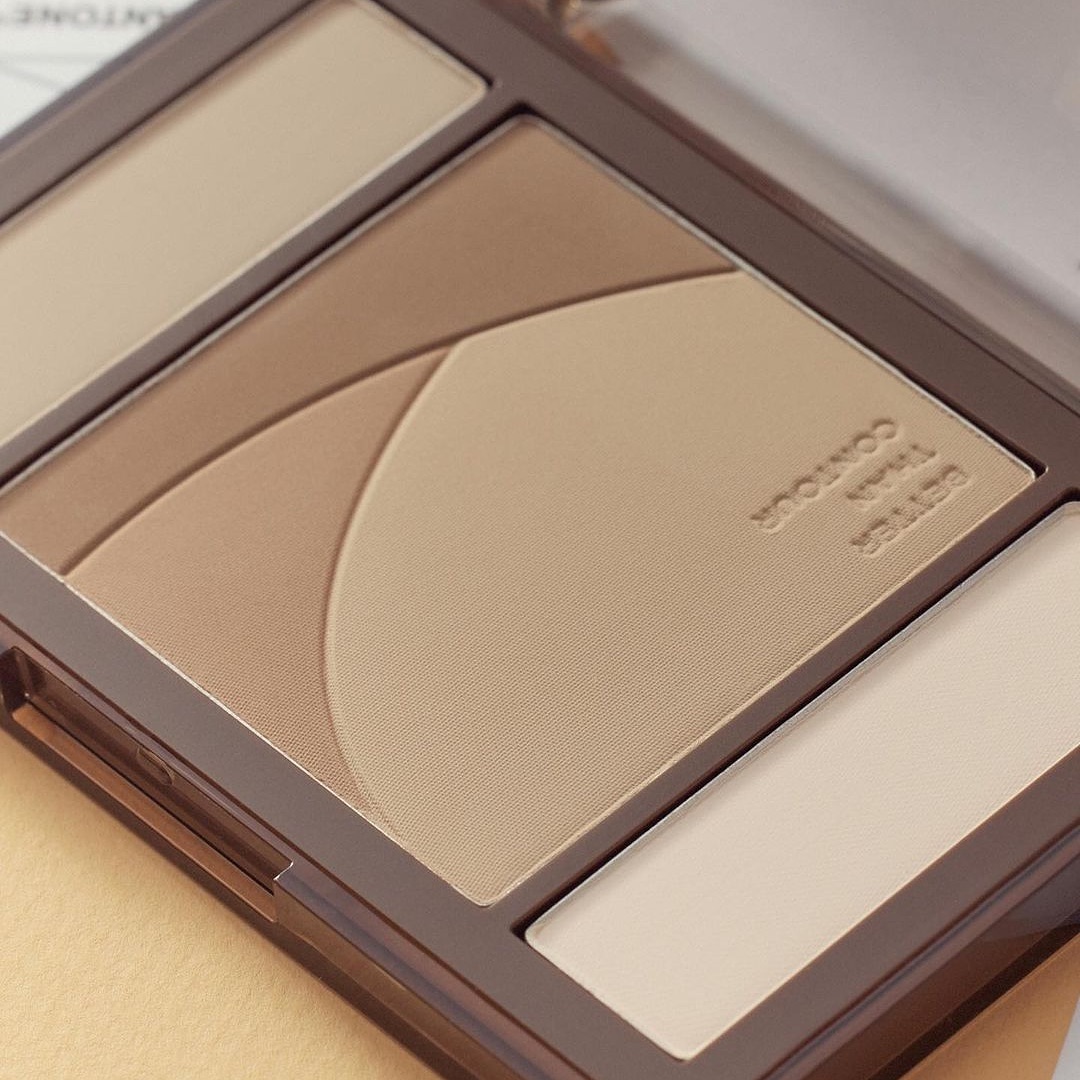 - Kết cấu 5 màu với 3 công dụng: Sử dụng phấn Volumer ở trên cùng để tạo điểm nhấn ở những vùng cao trên gương mặt như vùng da dưới mắt, góc mắt trong, đỉnh mũi hay đỉnh cong của môi. Sau đó tán 3 tone tạo khối Contour ở giữa với đầu cọ mềm để định hình các đường nét cho vùng hàm, chân tóc hay sống mũi cho diện mạo sắc nét hơn. Cuối cùng dùng phần phấn Downer dưới cùng để tạo đường nét sống động cho gương mặt, tăng hiệu ứng sáng tối hài hòa hơn