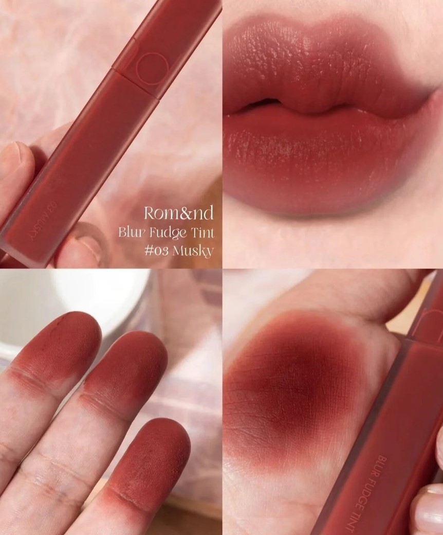 - Romand Blur Fudge Tint là son kem lì, với kết cấu êm xốp và có mùi thơm dịu nhẹ dễ chịu