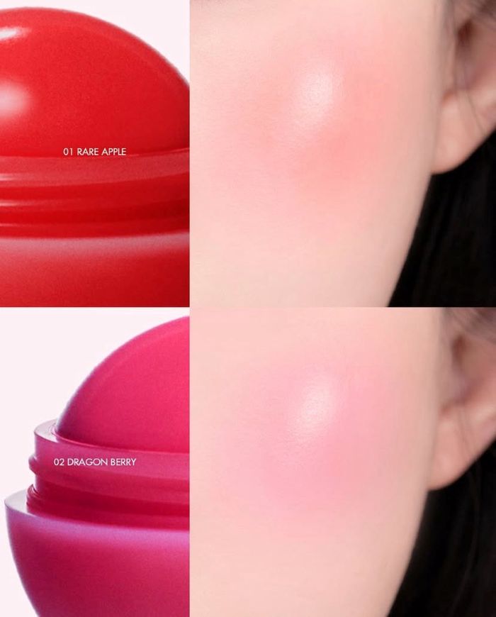 - Thiết kế sản phẩm hình quả cầu nhỏ độc đáo với các gam màu ngọt ngào và đầu lăn giúp việc tán má hồng trở nên nhanh chóng, không cần dùng cọ hay tay