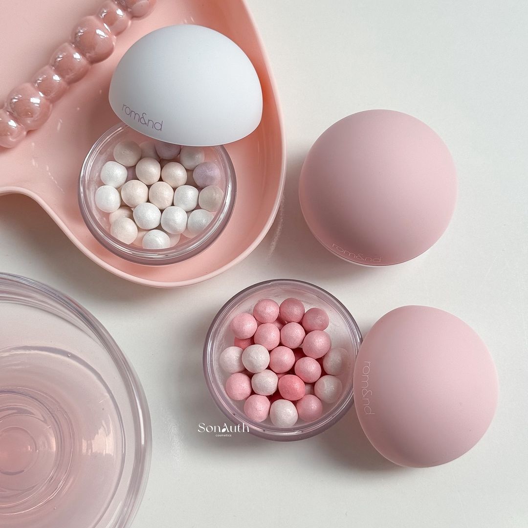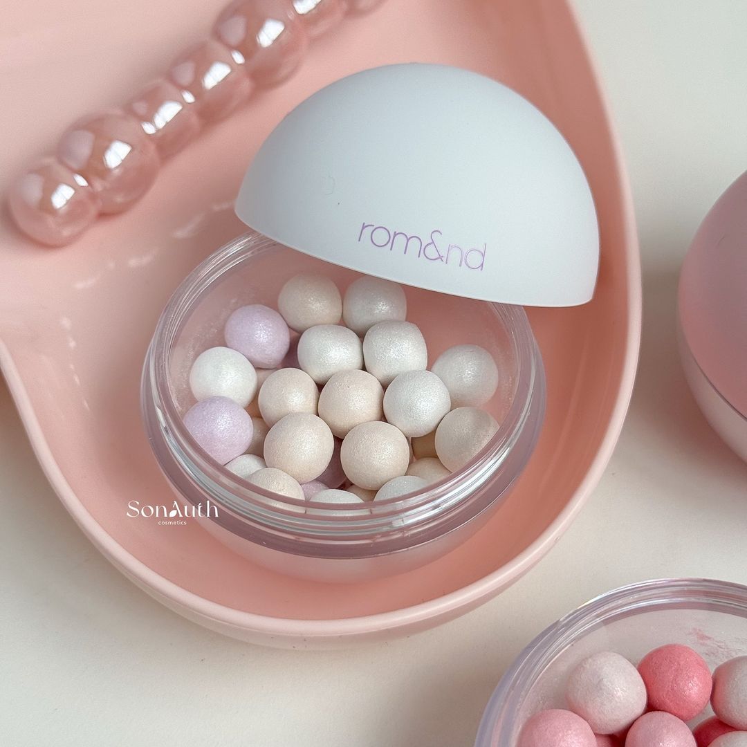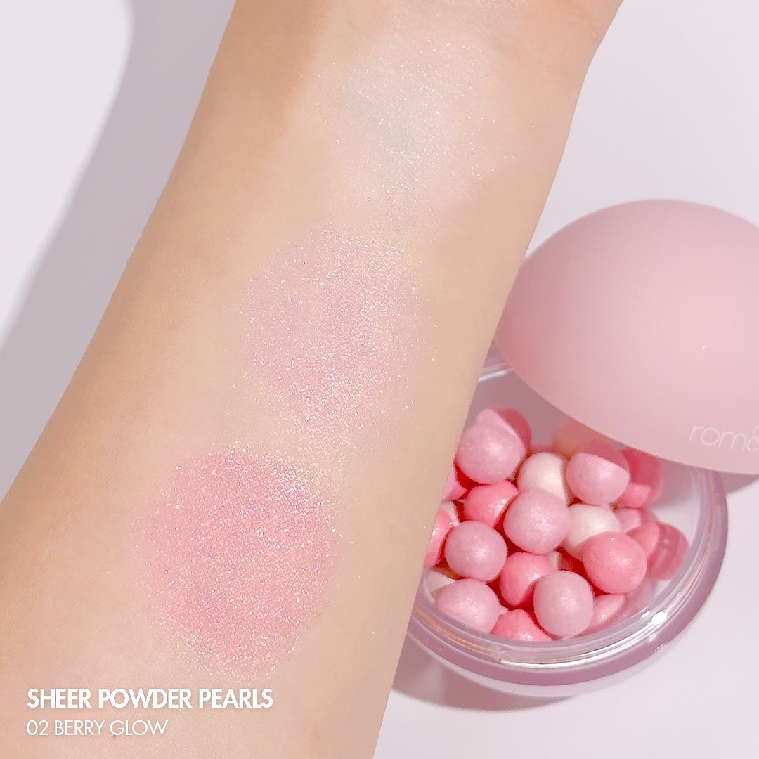 - Romand Sheer Powder Pearls là sản phẩm bắt sáng, làm tươi sáng da với ý tưởng độc đáo dạng viên ngọc trai tròn nhỏ nhiều màu sắc