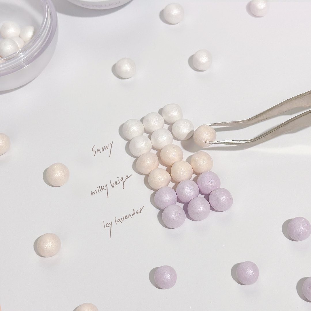 Dạng phấn bột ngọc trai mềm mịn được bo tròn thành từng viên nhỏ