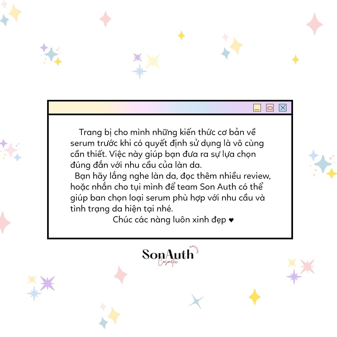 🥱Cùng nghía qua bài học hôm nay mà team SonAuth nói qua về các dòng serum. Và đừng ngại ngần inbox cho tụi mình để chọn dòng tinh chất vừa hợp nhu cầu da lại vừa hợp túi xiền nhé 😝 Xinh đẹp là không chờ “mèo lười” nè!