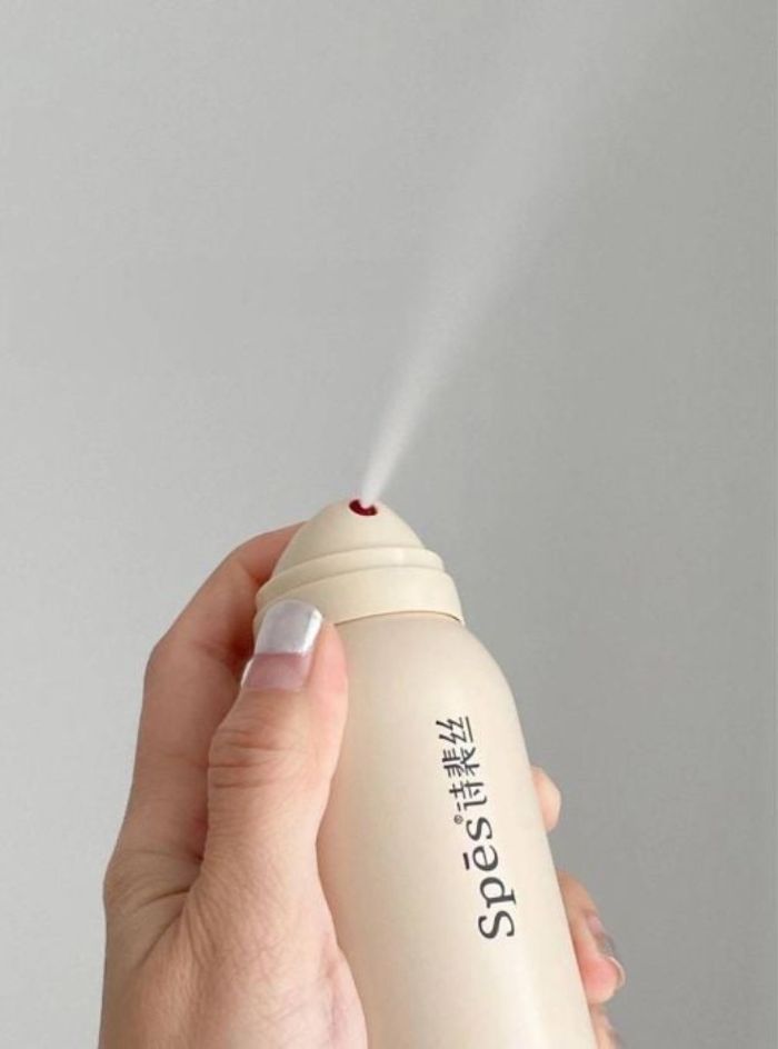 Giữ bình xịt thẳng đứng và cách 20-30cm so với da đầu rồi xịt với lượng vừa đủ
